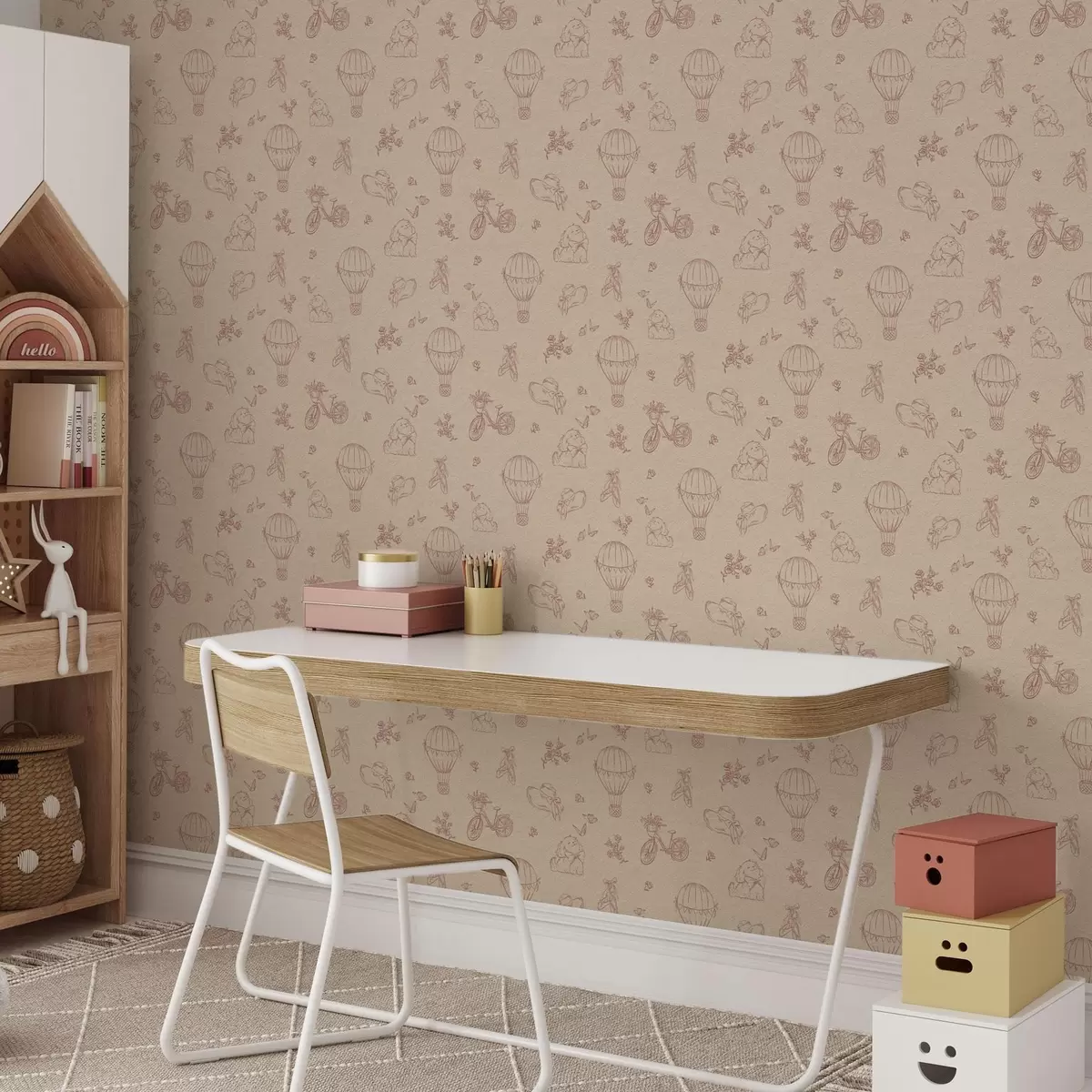 Tapete Babyrosa Muster mit Hund, Blumen und Luft Nr. a00279