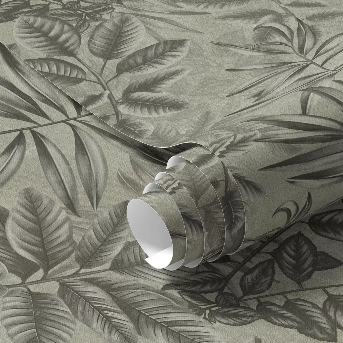 Tapete Graue tropische Blätter in verschiedenen Formen auf einem Vintage-Hintergrund Nr. a00297