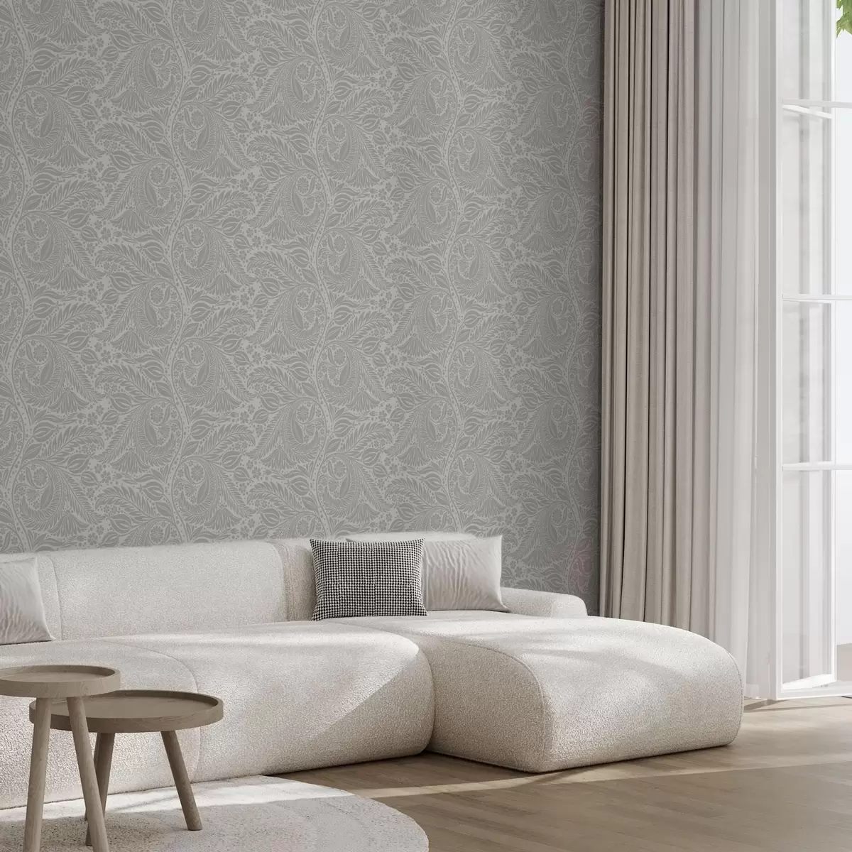 Tapete Graue Folklorestilisierung mit Blättern und Blumen Nr. a00301