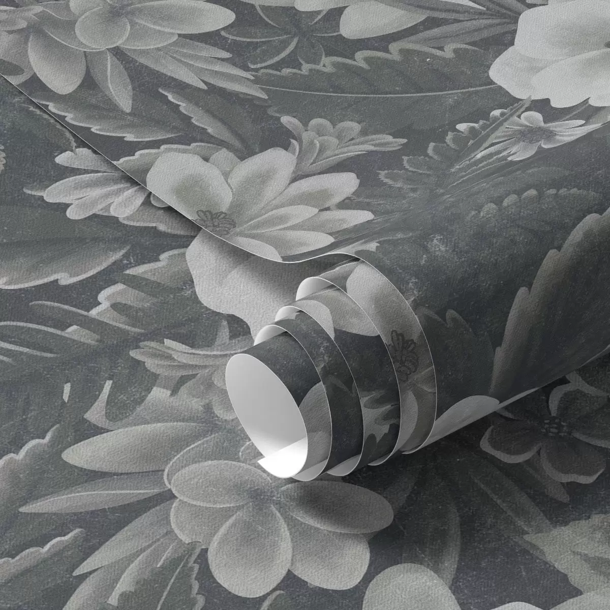 Tapete Graues und weißes Blumenmuster mit Retro-Effekt Nr. a00307