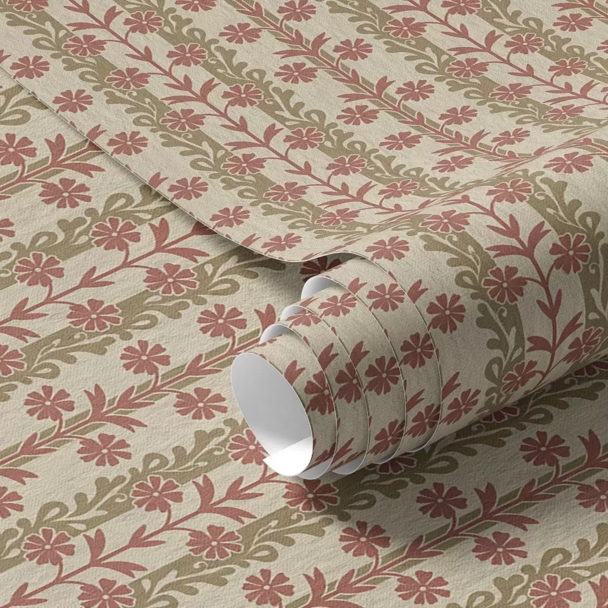 Tapete Gestreiftes Ornament mit roten Blumen Nr. a00341