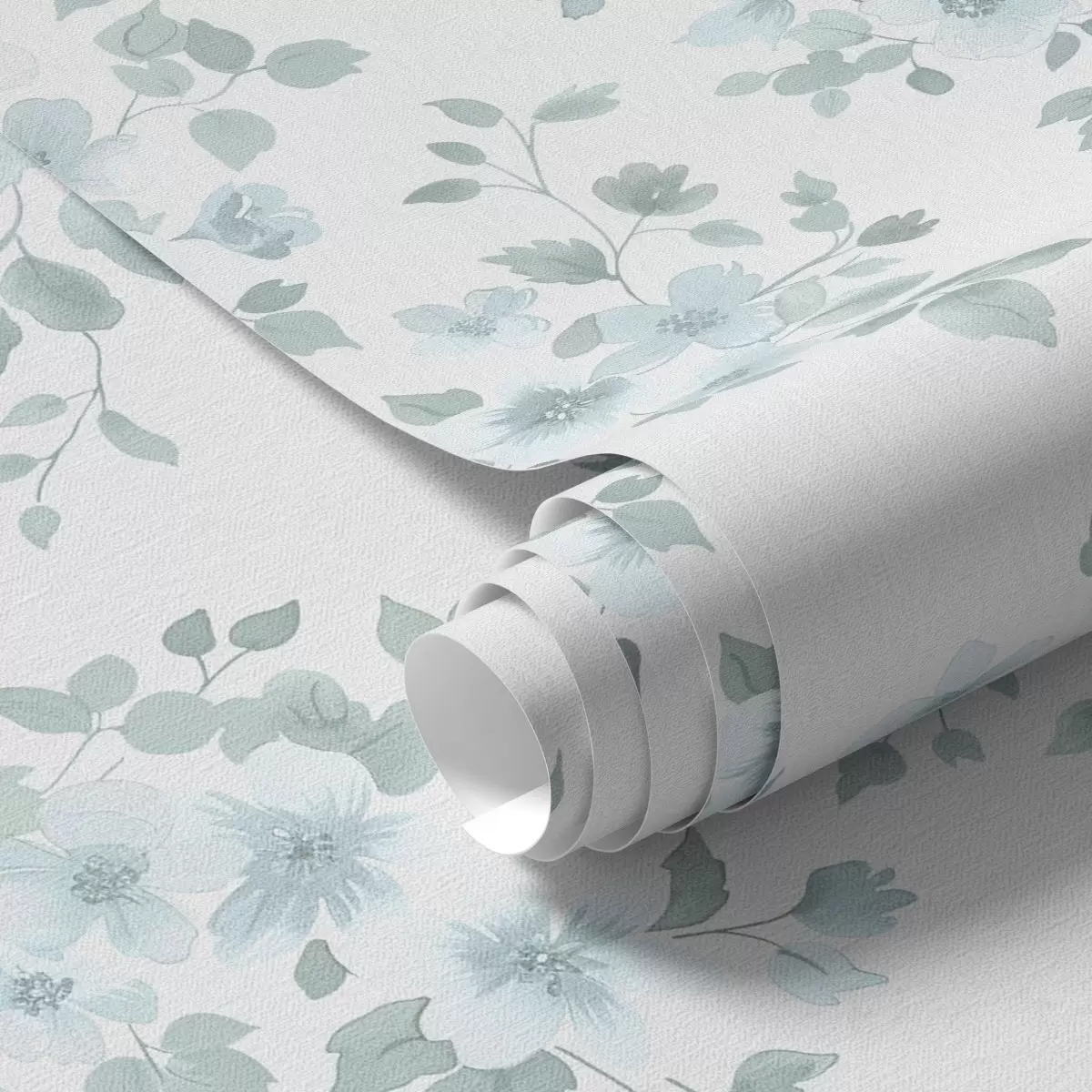 Tapete Blassblaue Blumen auf weißem Hintergrund, Aquarellstil Nr. a00364