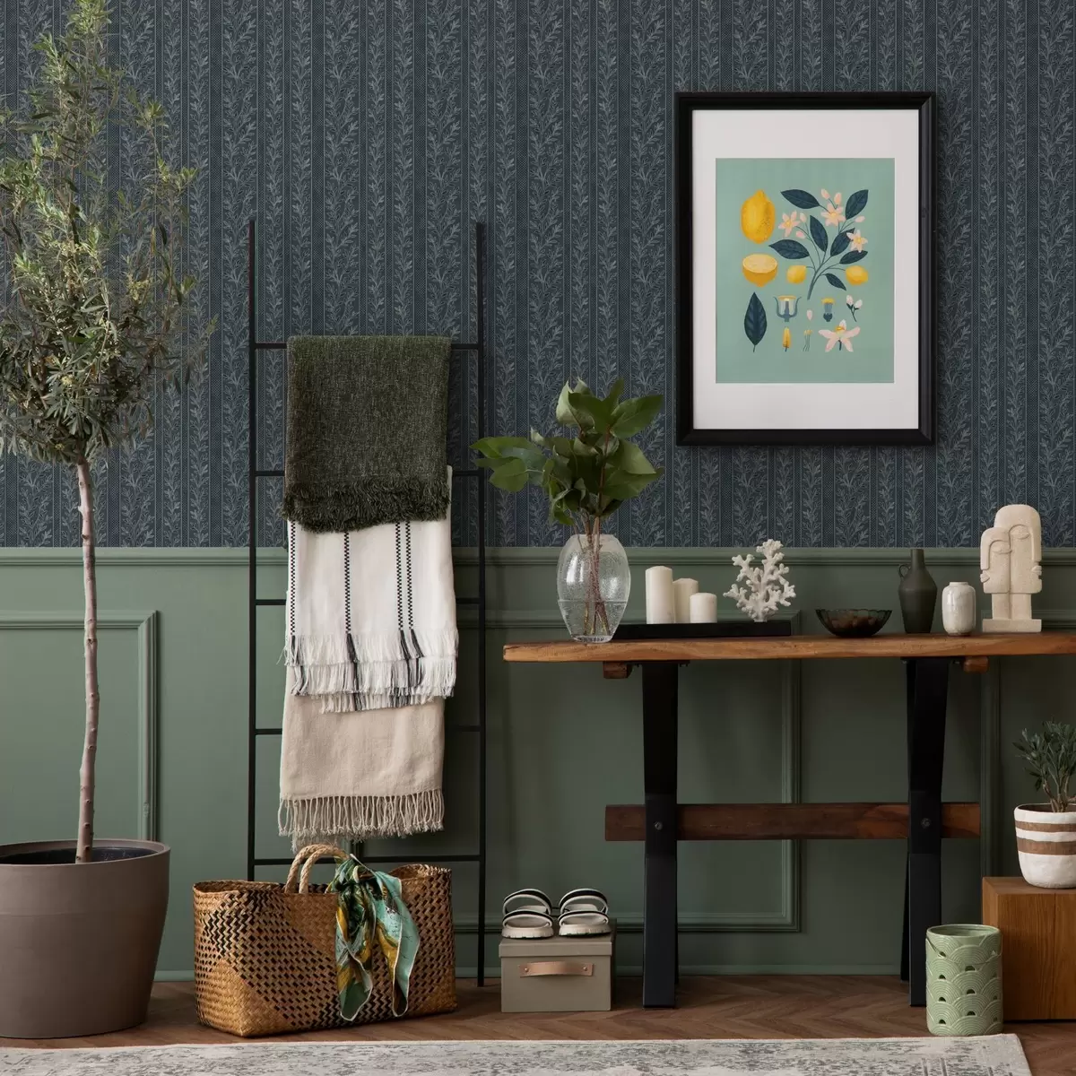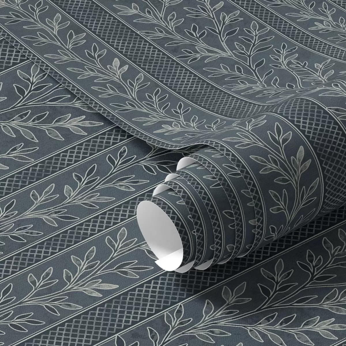 Tapete Gestreiftes Muster mit Zweigen auf blauem Hintergrund Nr. a00425