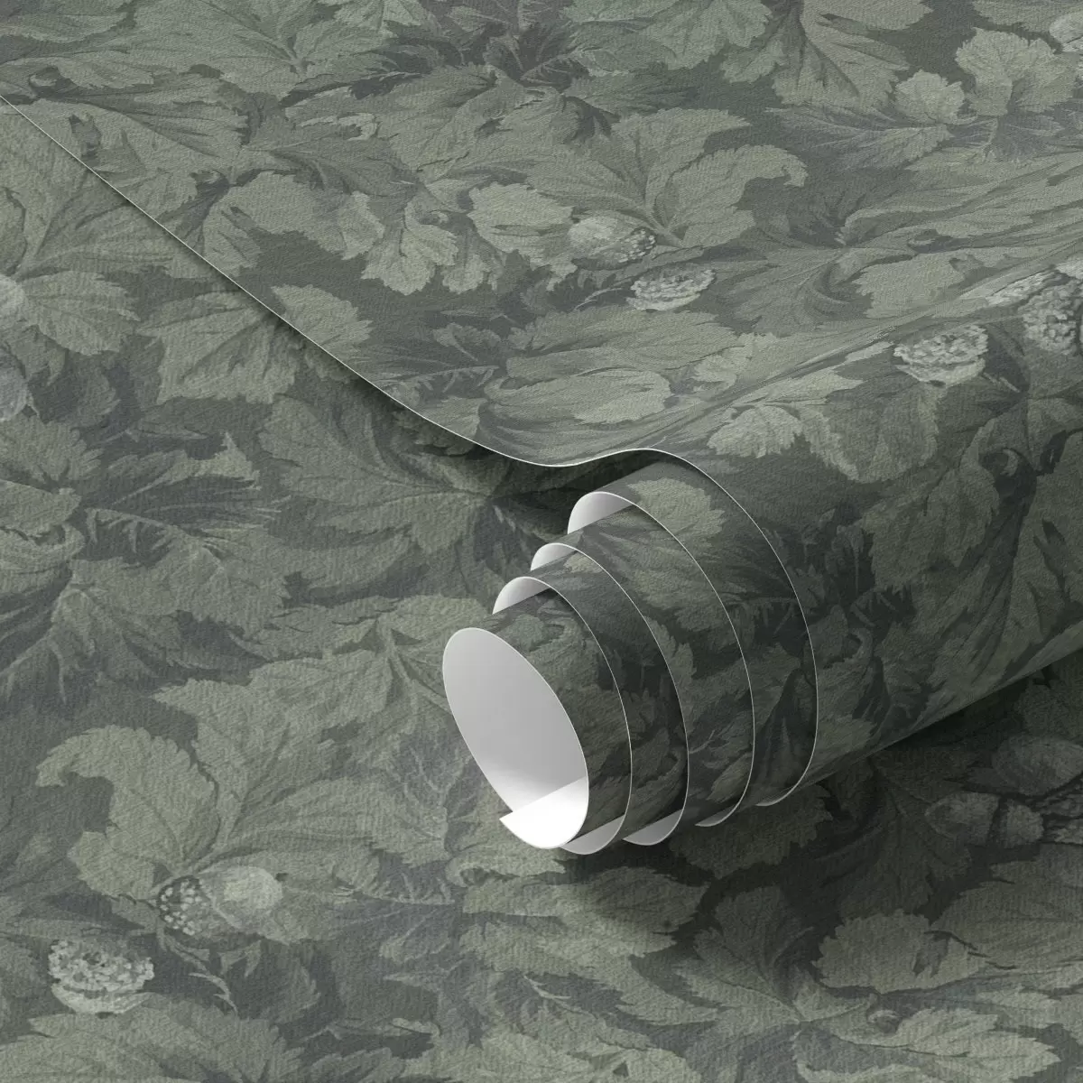 Tapete Dunkle Textur der Blätter mit Eicheln in tiefem Grün Nr. a00461