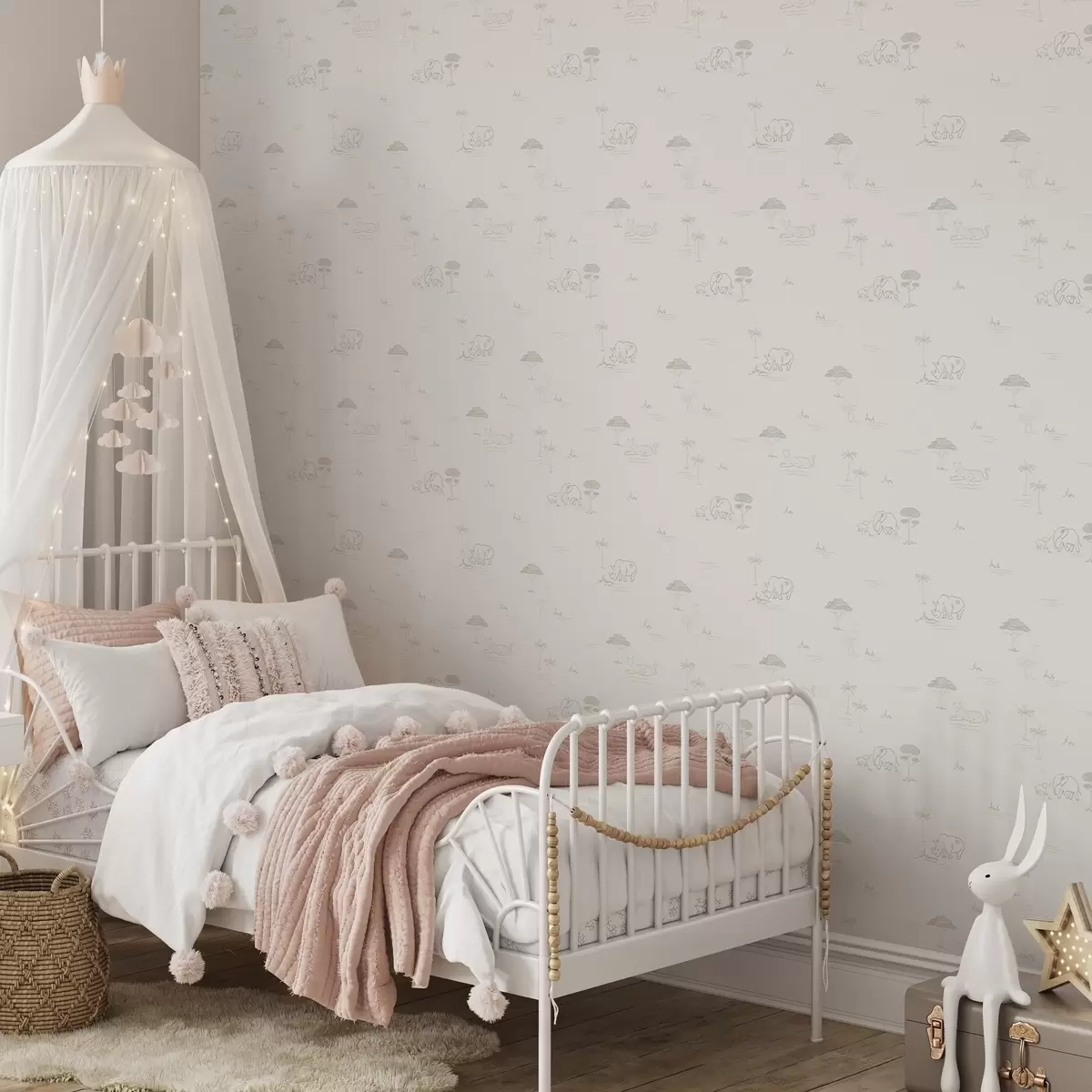 Tapete Minimalistische Safari: Elefanten, Nashörner, Leoparden und Palmen Nr. a00492