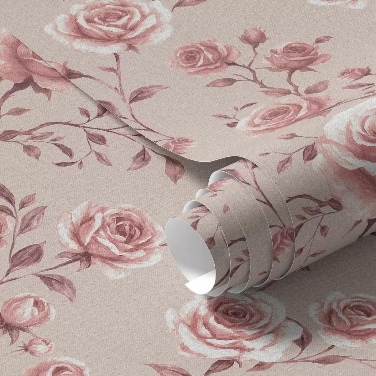 Tapete Pudrige Rosen auf Beige – Vintage-Muster Nr. a00497