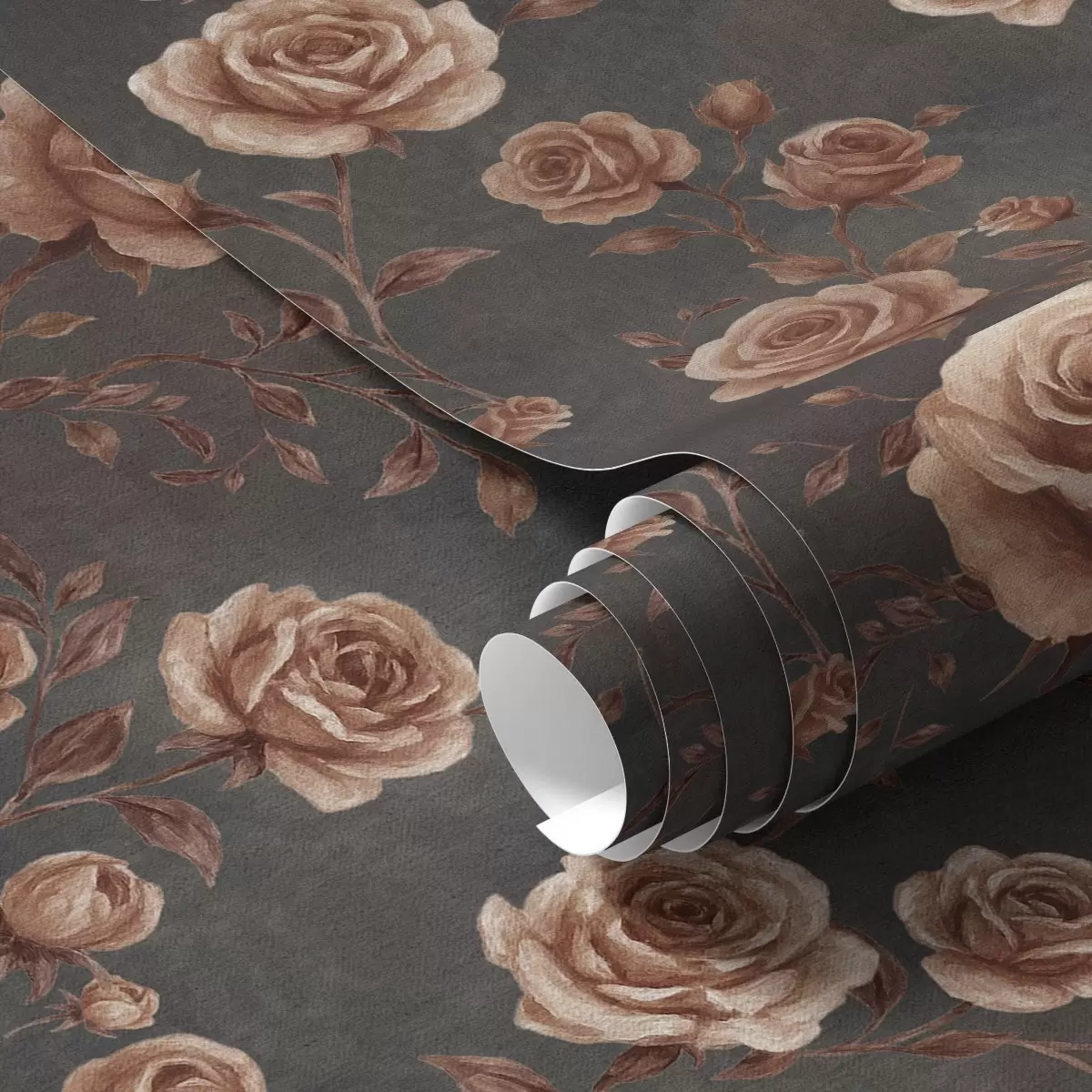 Tapete Vintage-Rosen auf graphitfarbenem Hintergrund, Terrakotta-Farbpalette Nr. a00497v1