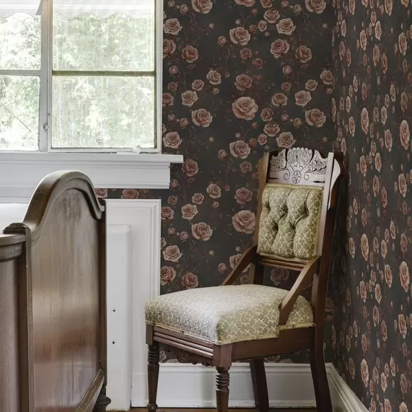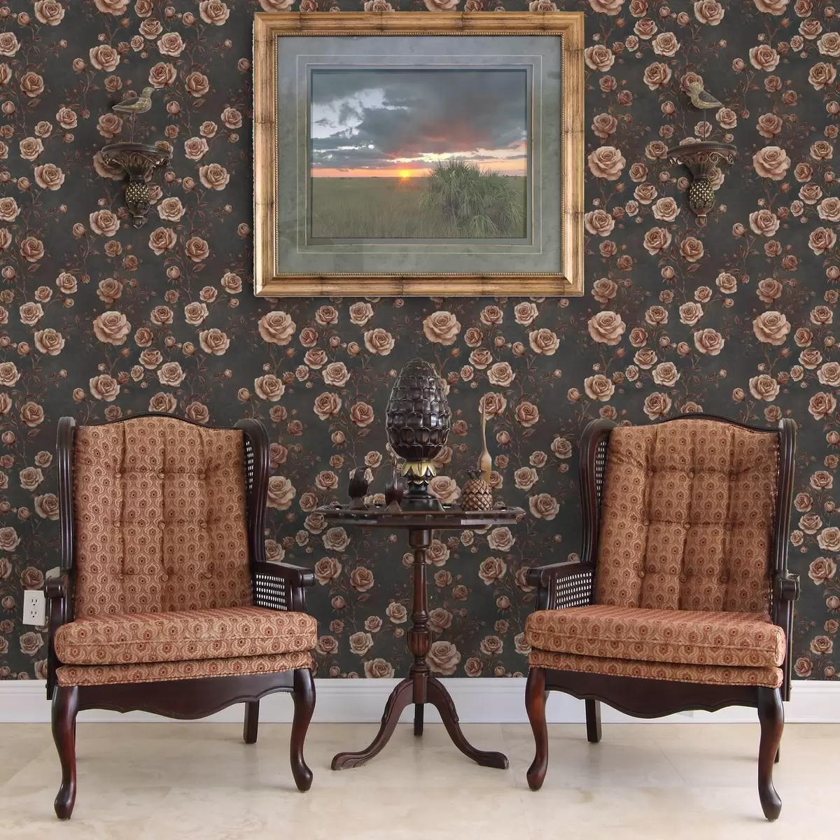Tapete Vintage-Rosen auf graphitfarbenem Hintergrund, Terrakotta-Farbpalette Nr. a00497v1
