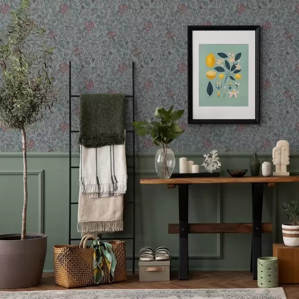 Tapete Pastellfarbene Blumen auf Graublau Nr. a00499