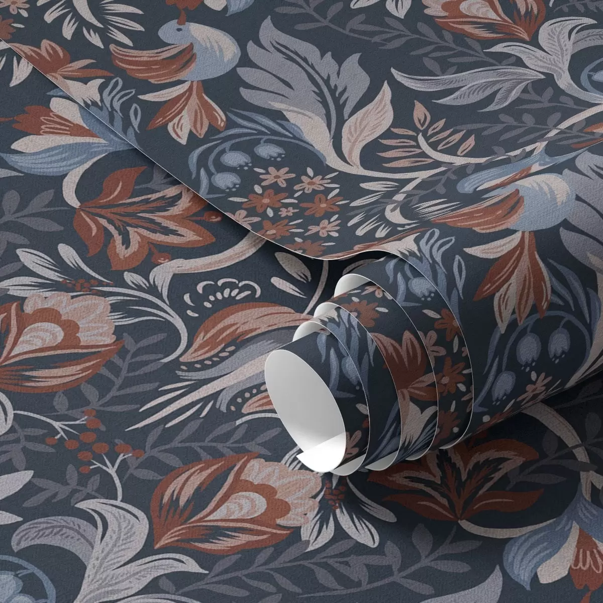 Tapete Volksornament mit Vögeln, tiefes Indigo Nr. a00502v1