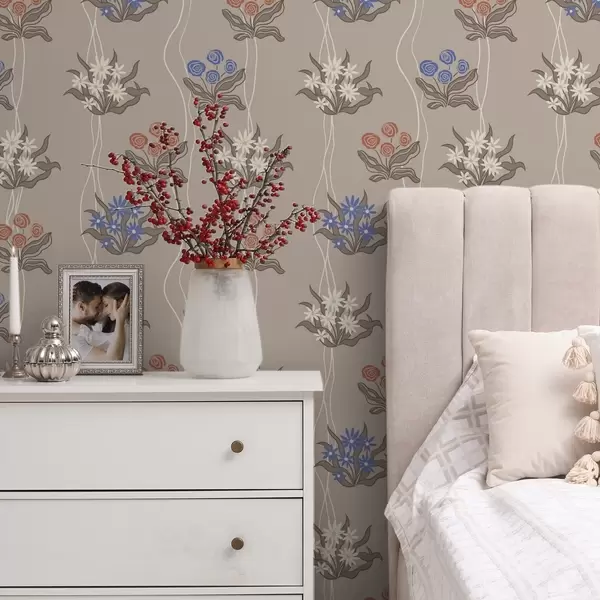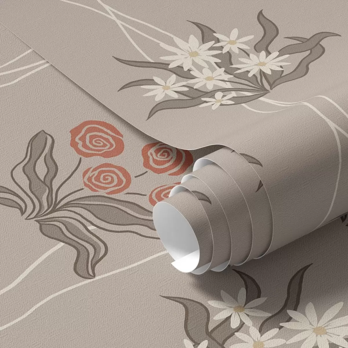 Tapete Retro-Blumen mit Wellenlinien auf warmem Beige Nr. a00503