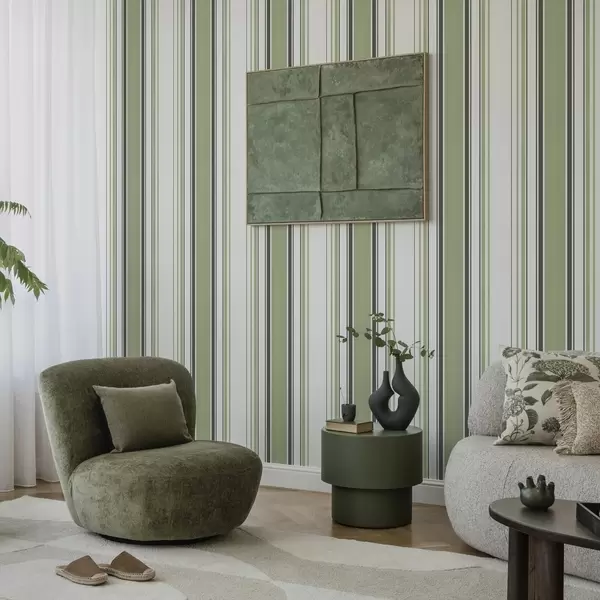 Tapete Weißer Hintergrund mit einer Mischung aus grünen und schwarzen Streifen Nr. a00520