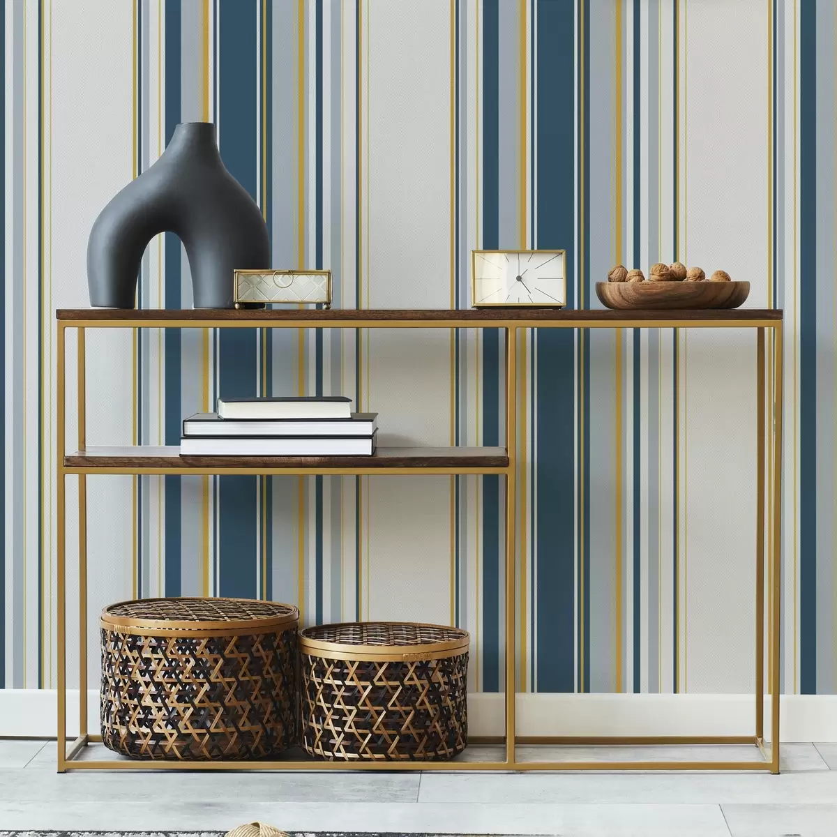 Tapete Dichtes Muster aus blauen und gelben Längsstreifen Nr. a00524
