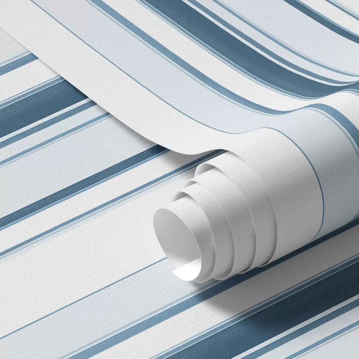 Tapete Türkisfarbene und blaue, unterschiedlich breite Streifen auf hellem Grund Nr. a00530