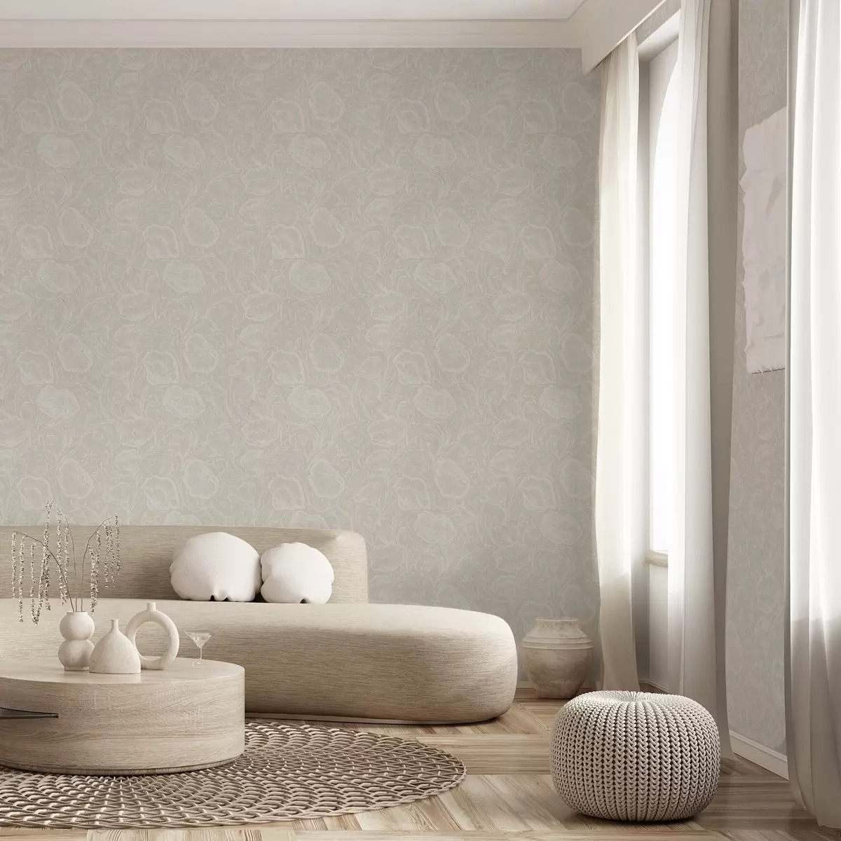 Tapete Strichzeichnungen von Mohnblumen auf cremefarbenem Hintergrund Nr. a00572