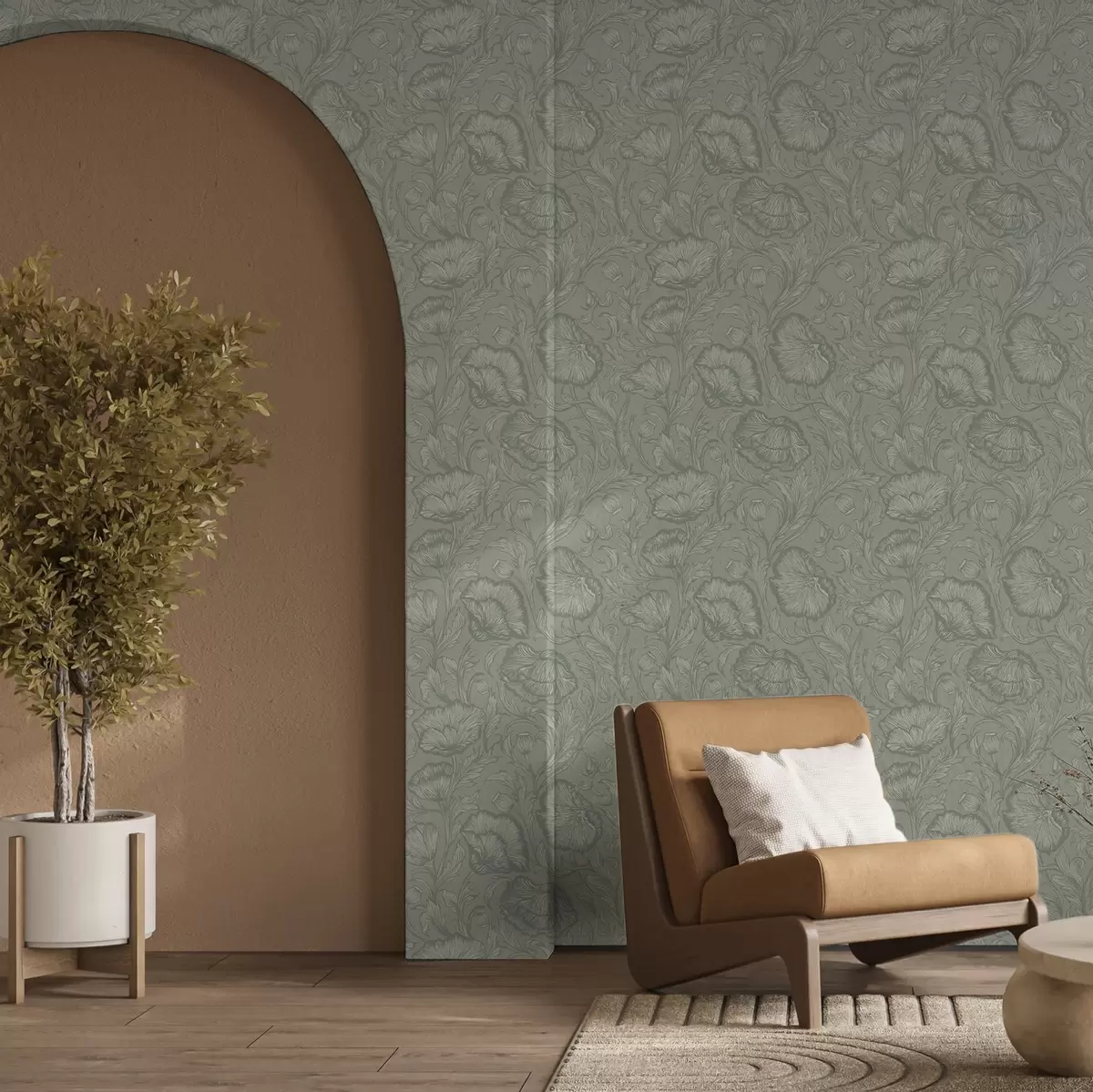 Tapete Strichzeichnungen von Mohnblumen auf grau-grünem Hintergrund Nr. a00572v1
