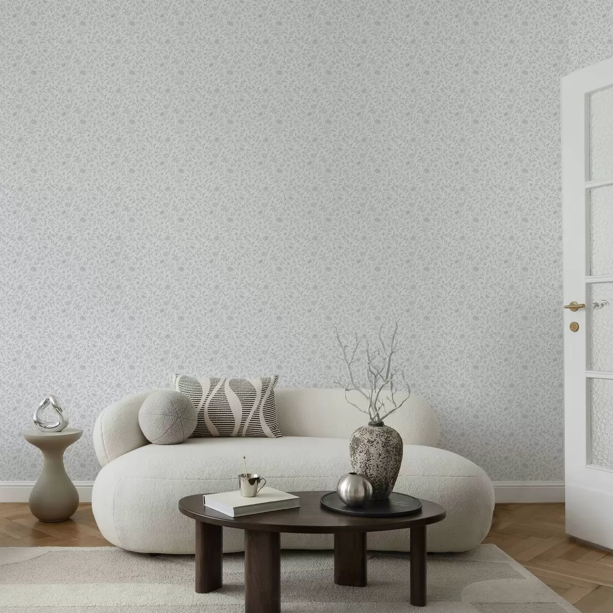 Tapete Feine blaue Blumen in Strichzeichnung auf cremefarbenem Hintergrund Nr. a00576