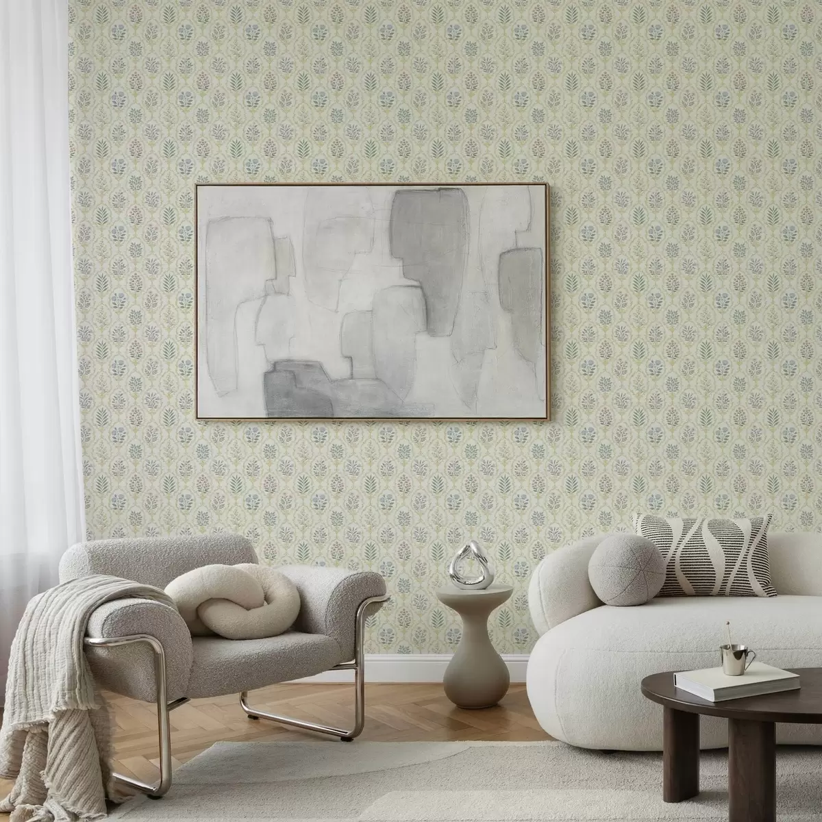 Tapete Botanische Medaillons in einem Gitter, Pastelltöne Nr. a00579