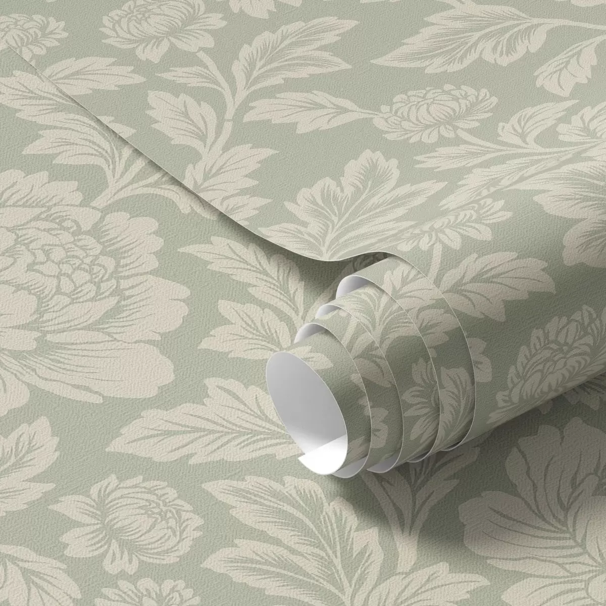 Tapete Große Strichzeichnungen von Pfingstrosen auf salbeifarbenem Hintergrund Nr. a00582