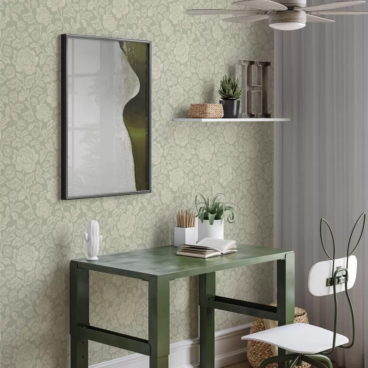 Tapete Große Strichzeichnungen von Pfingstrosen auf salbeifarbenem Hintergrund Nr. a00582