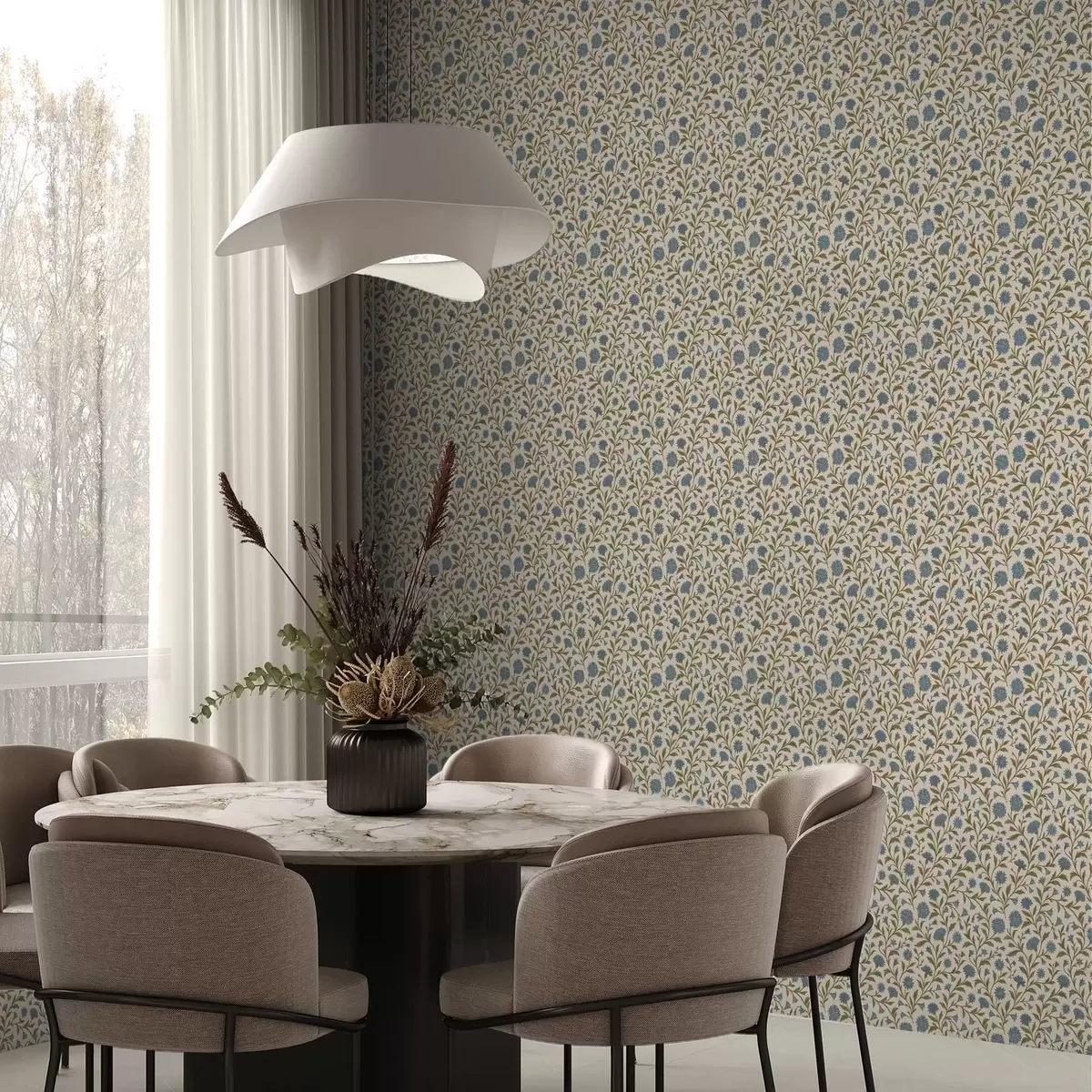Tapete Kornblumen und Triebe auf beigem Hintergrund Nr. a00588