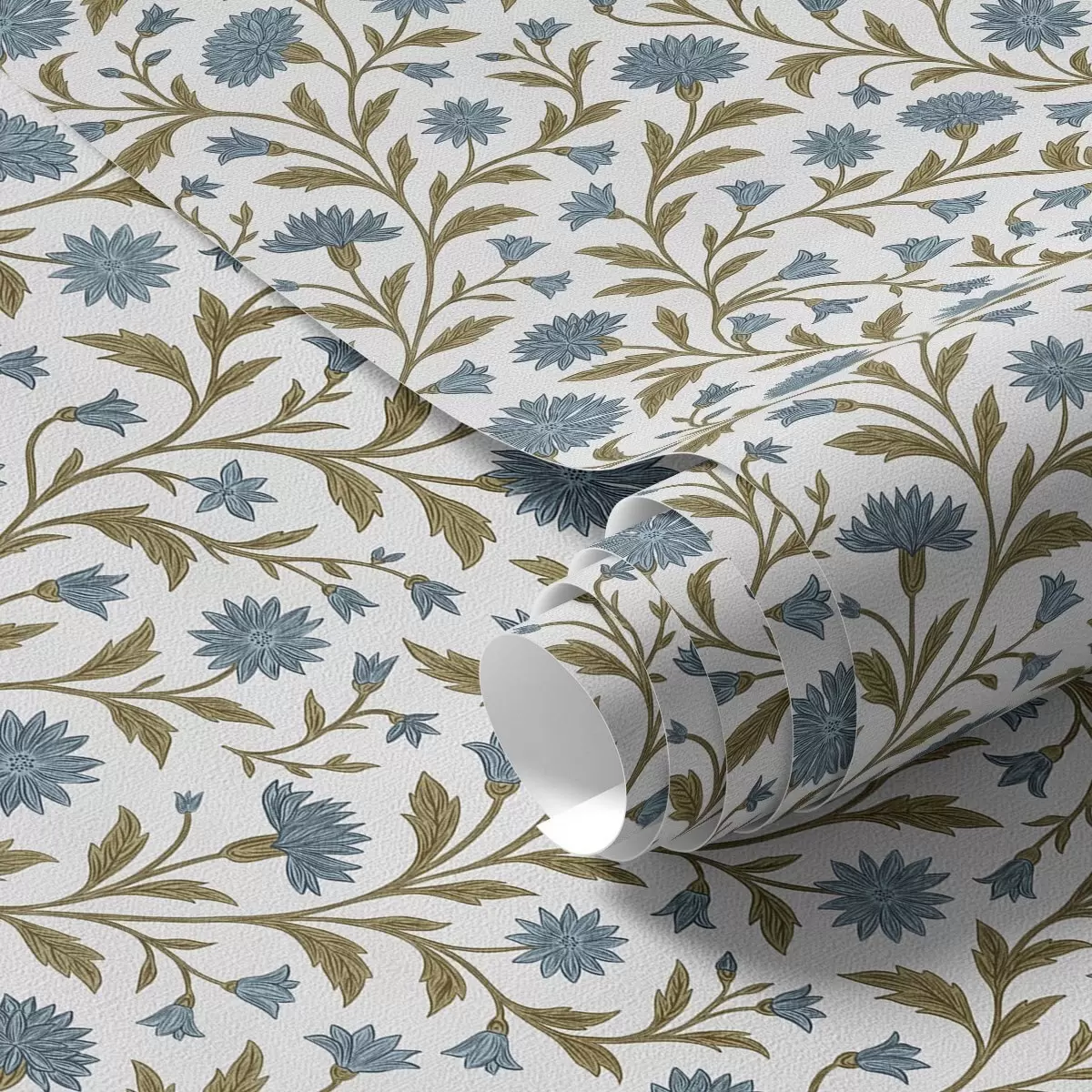 Tapete Kornblumen und Triebe auf weißem Hintergrund Nr. a00588v1