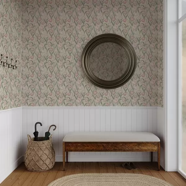 Tapete Zartrosa Tulpen auf einem sanften beigen Hintergrund Nr. a00589