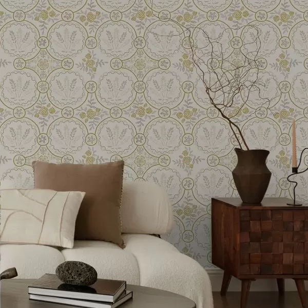 Tapete Retro-Ornament mit Weizen und Rosen in Gold Nr. a00595