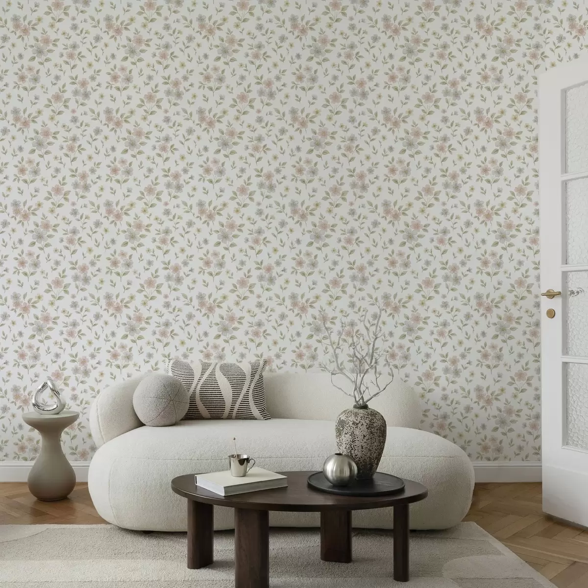 Tapete Kleine Aquarellblumen in Pastelltönen auf weißem Hintergrund Nr. a00596v1