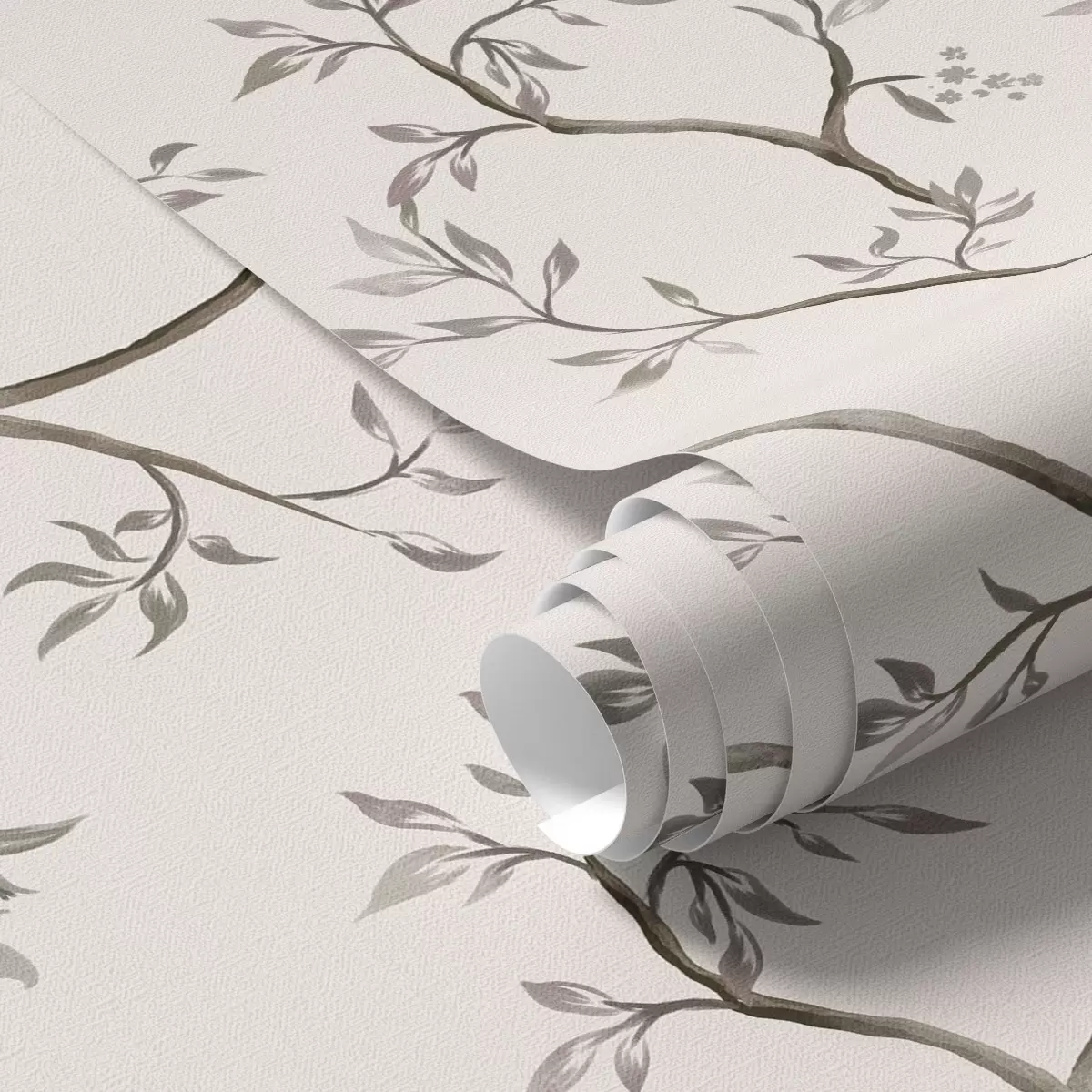 Tapete Zarte, blättrige Zweige auf warmem Cremehintergrund Nr. a00597v1