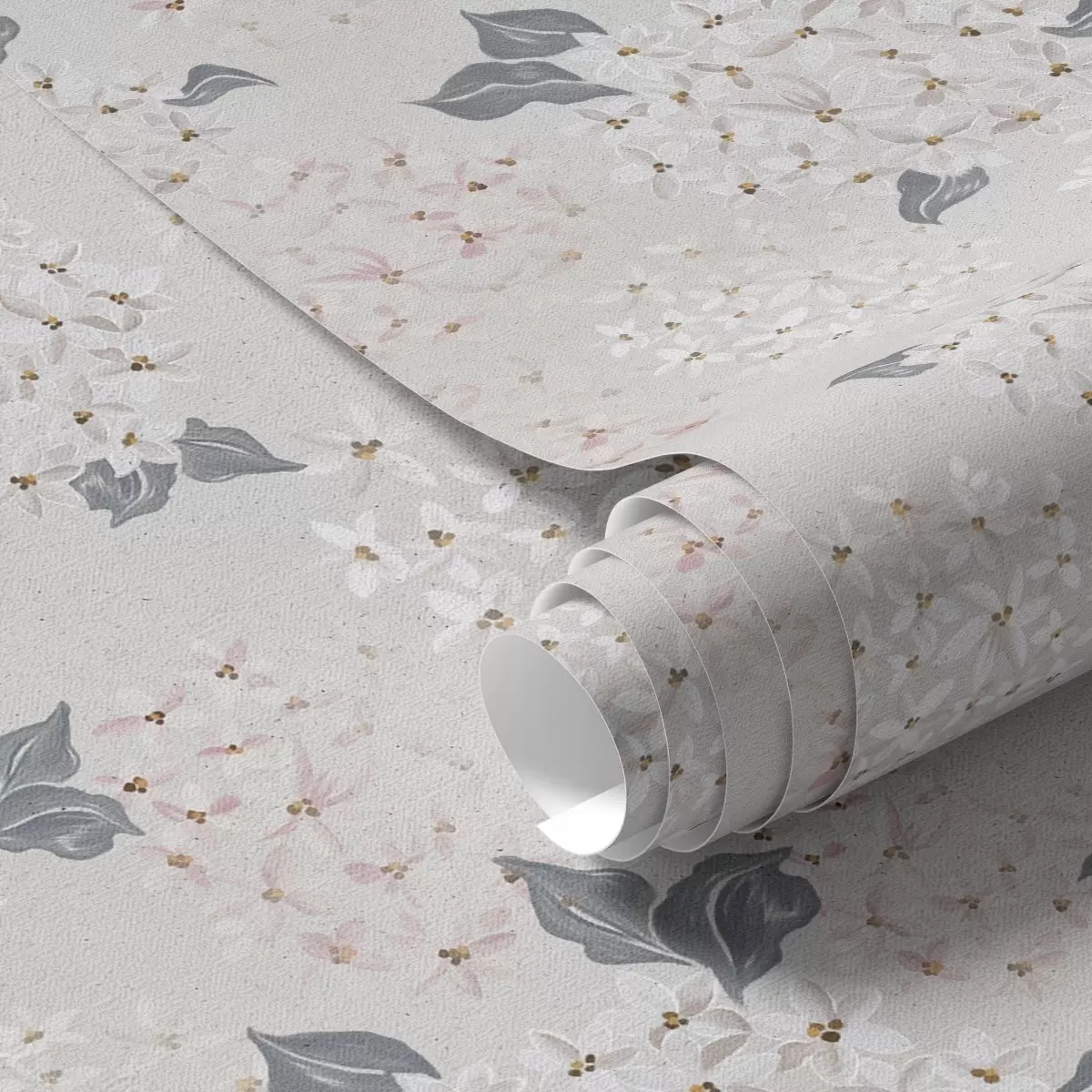 Tapete Luftige Blüten auf hellem Hintergrund, zarte rosa-graue Farbtöne Nr. a00600