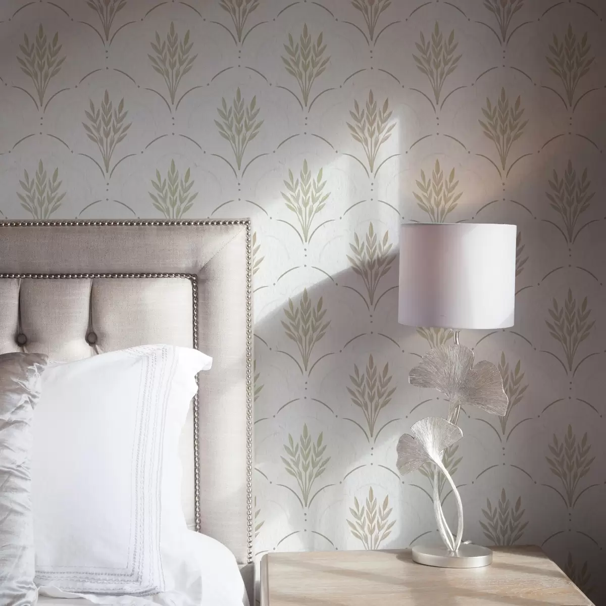 Tapete Weizen in einem gewölbten Ornament, sanfte Pastelltöne auf Weiß Nr. a00607v1