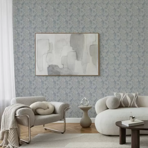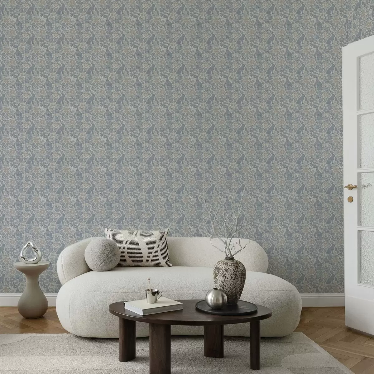 Tapete Waldtiere und Blumen: Fuchs und Hase in Blautönen Nr. a00613