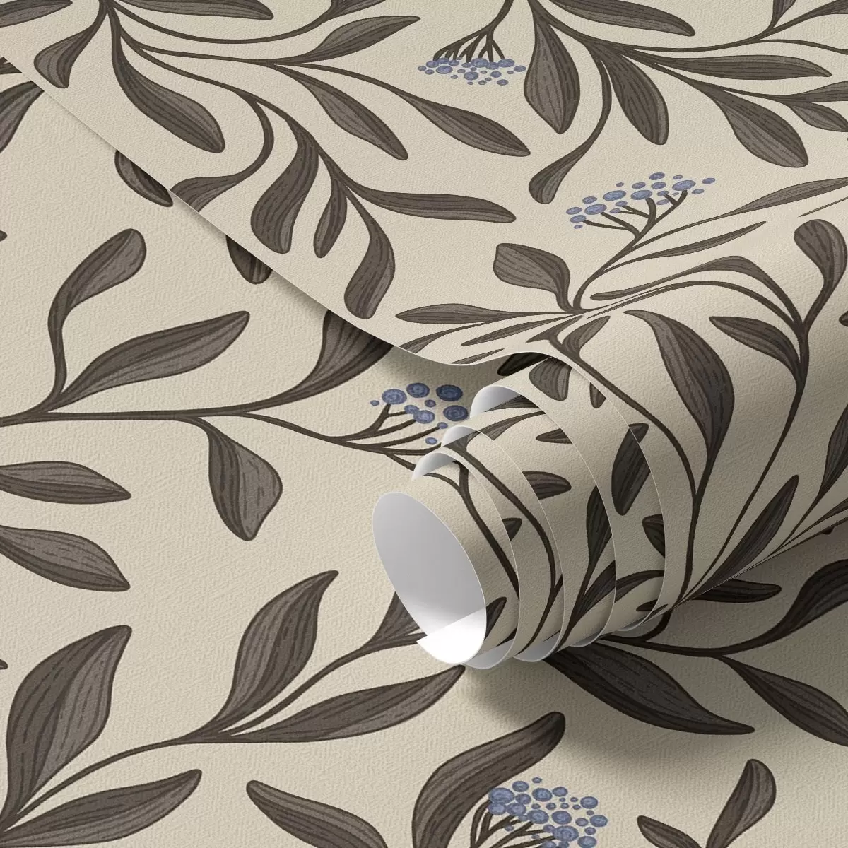 Tapete Schokoladenzweige mit blauen Beeren auf warmem Hintergrund Nr. a00615