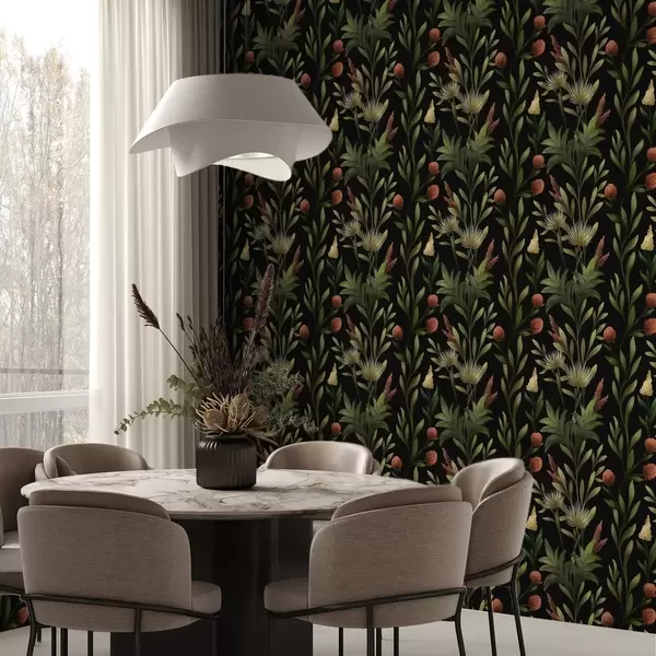 Tapete Hohe Gräser und Blüten auf schwarzem, detailreichem Druck Nr. a00620