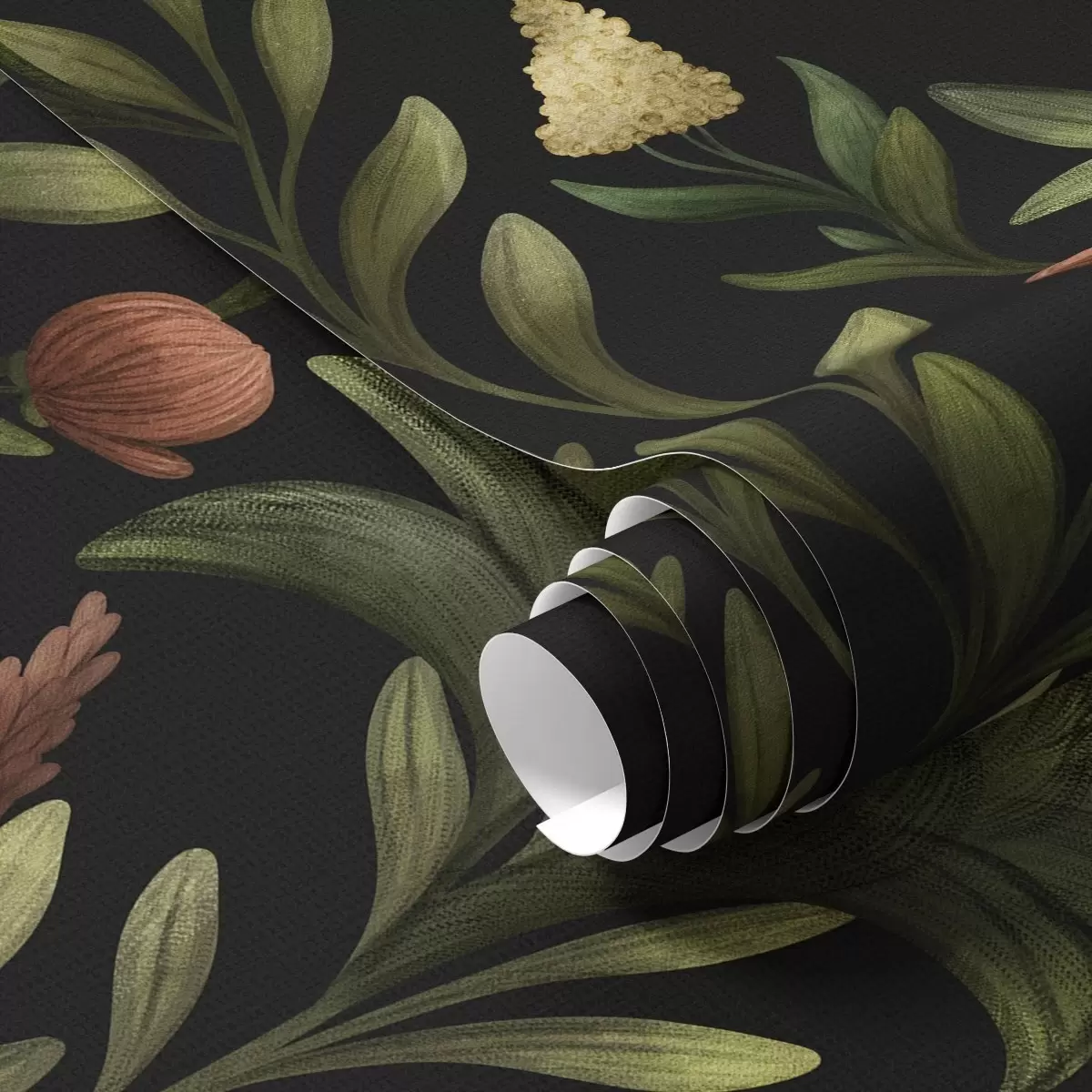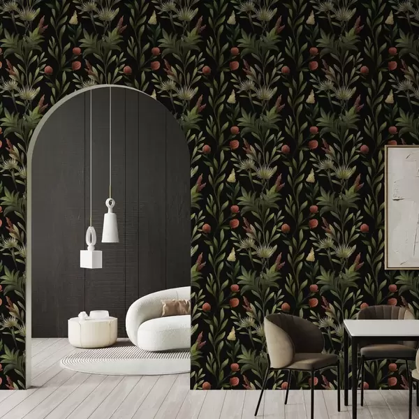 Tapete Hohe Gräser und Blüten auf schwarzem, detailreichem Druck Nr. a00620