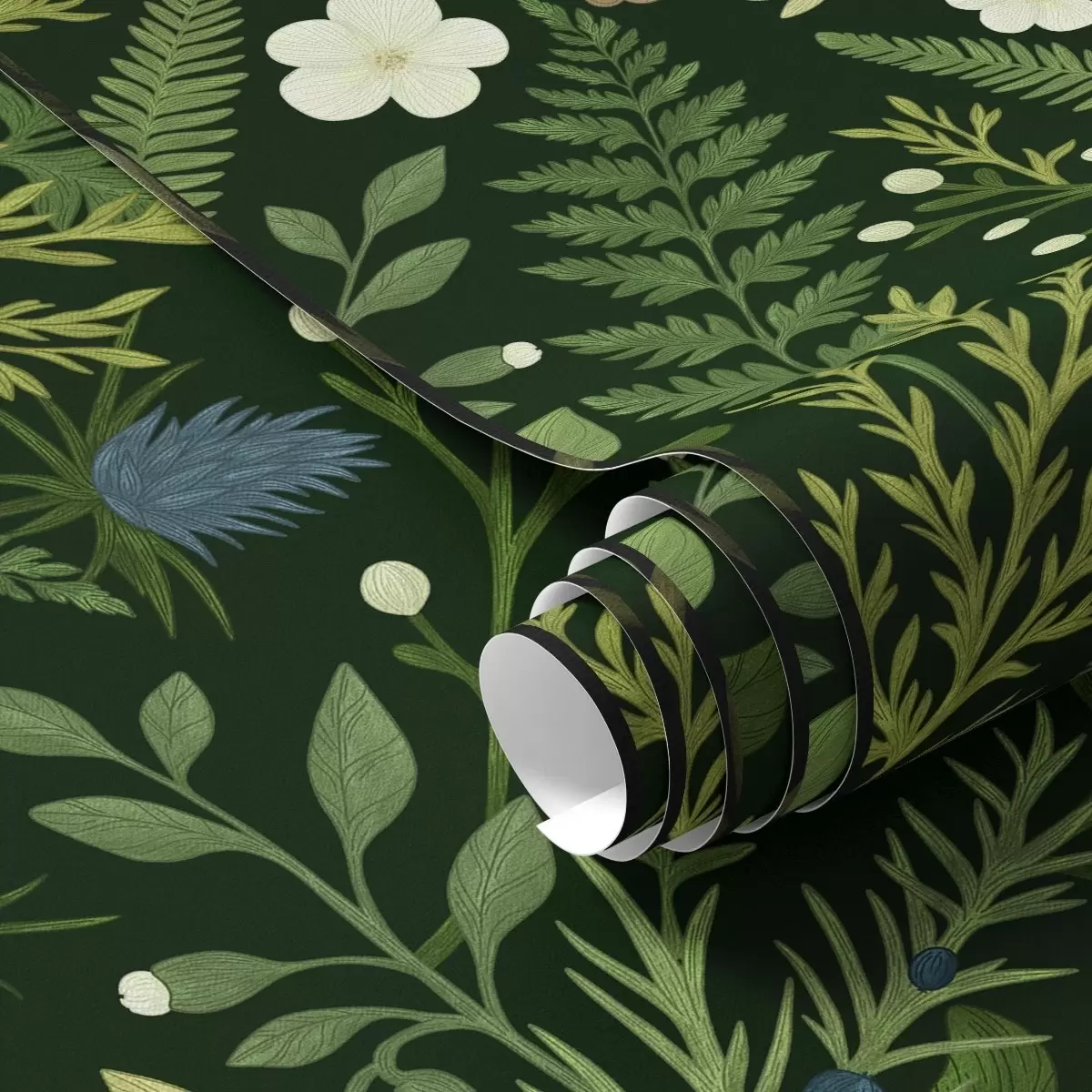Tapete Waldkräuter und Beeren auf dunkelgrünem Hintergrund Nr. a00621v2