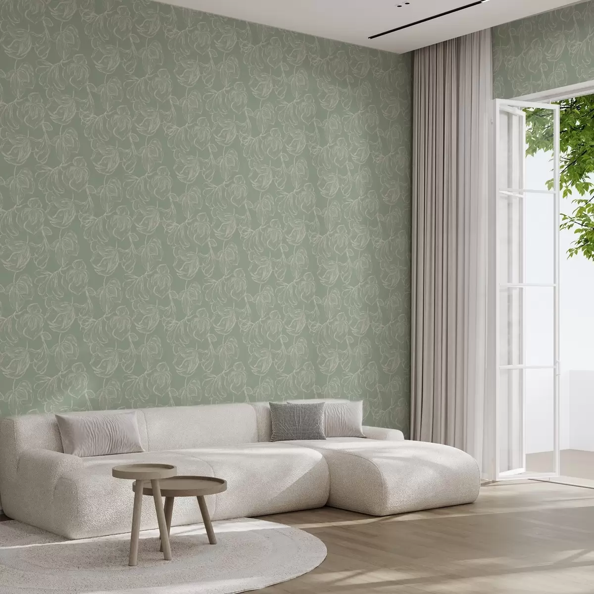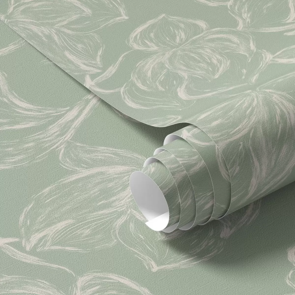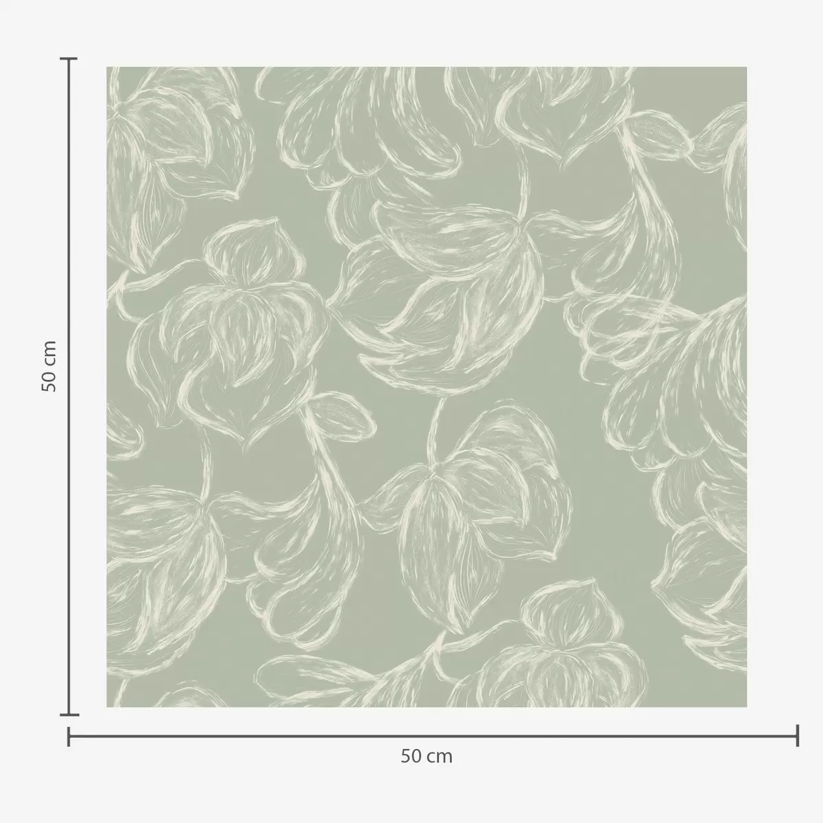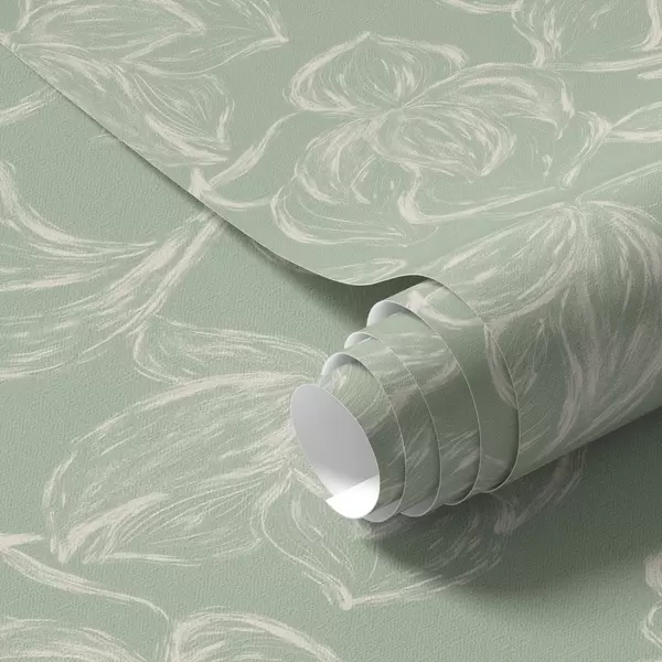 Tapete Lineare große Blumen, Kreidezeichnungen auf salbeifarbenem Hintergrund Nr. a00625v1