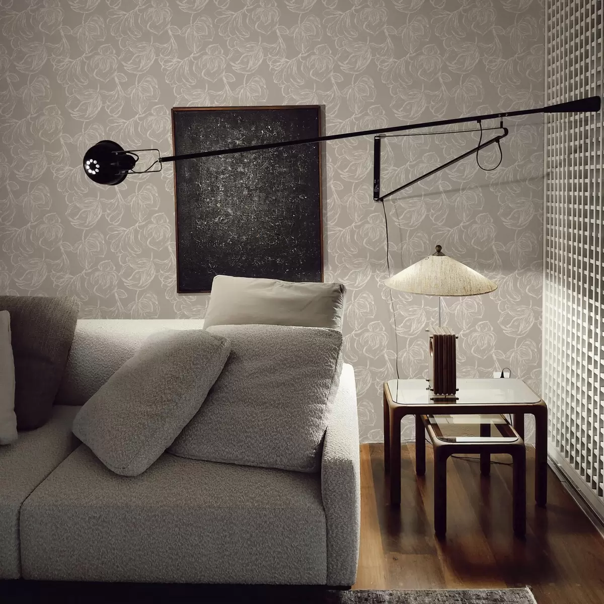 Tapete Cremefarbene Blumenumrisse auf warmem Taupe-Hintergrund Nr. a00625v2