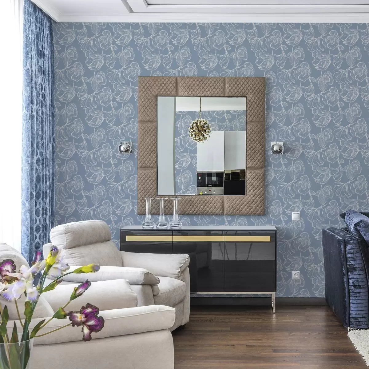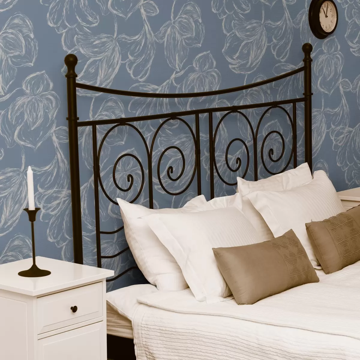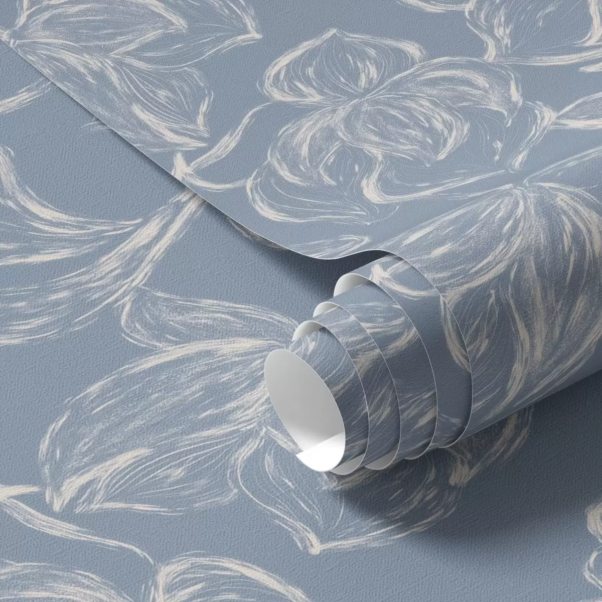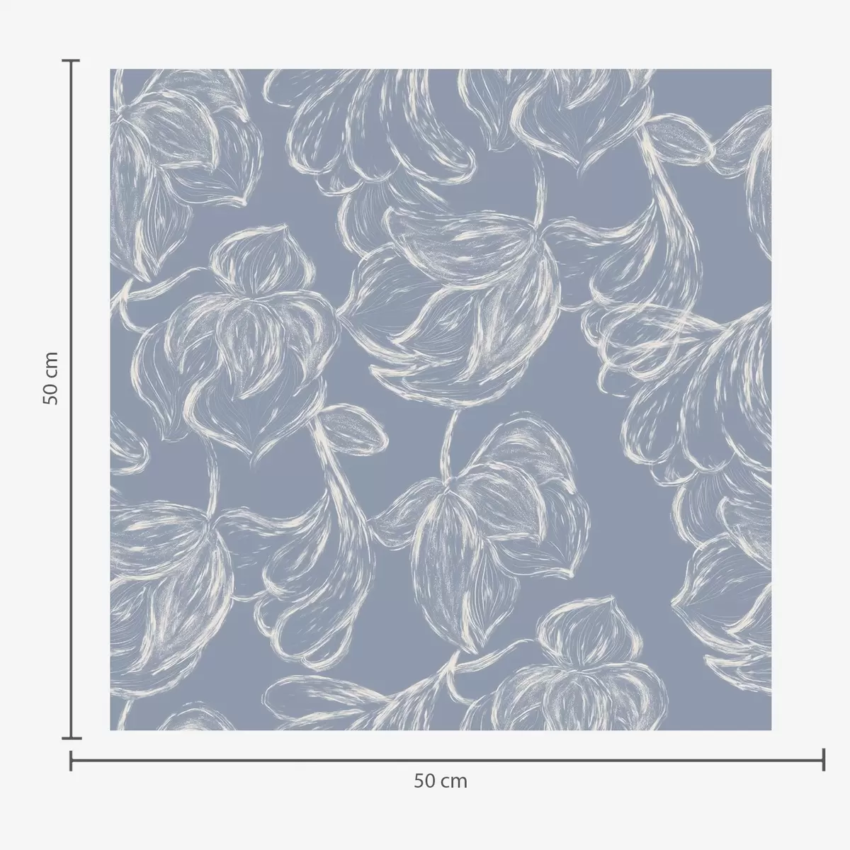 Tapete Hellblauer Hintergrund mit kreidefarbenen Blumenumrissen Nr. a00625v3