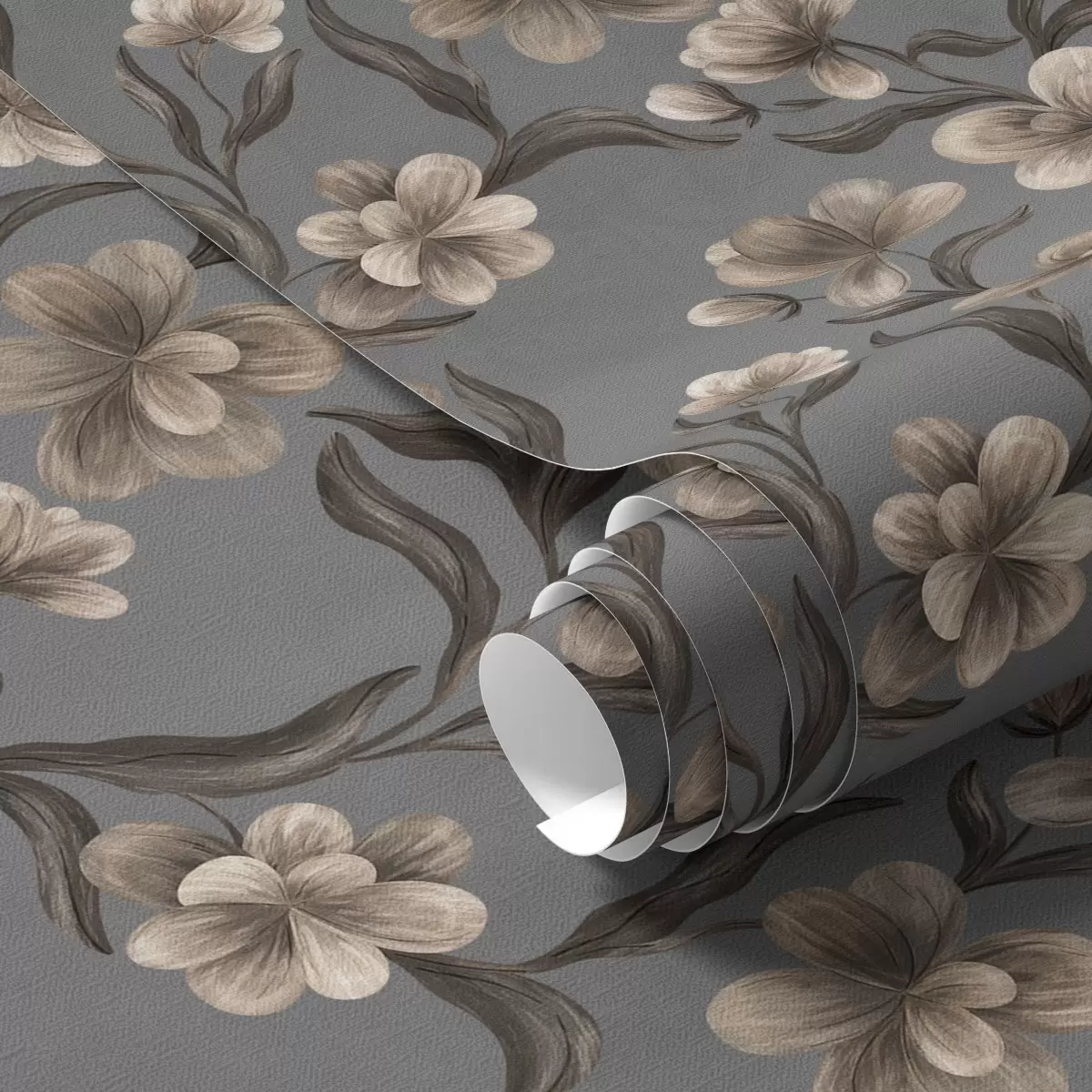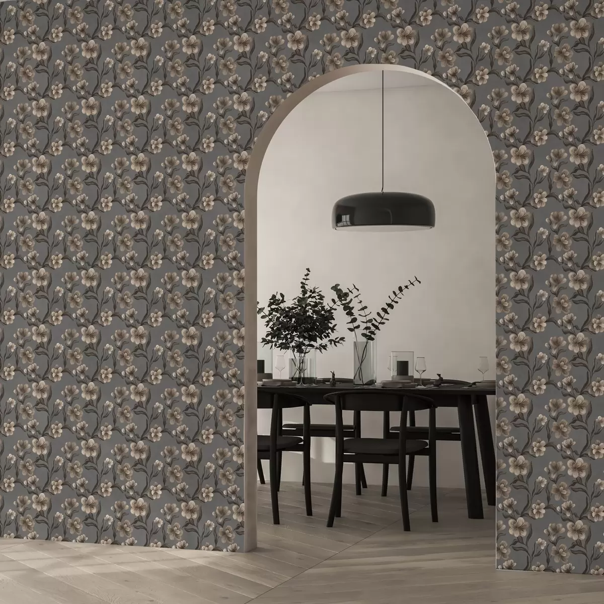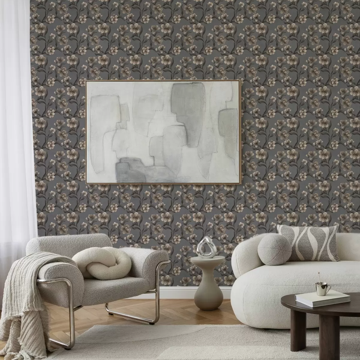 Tapete Beigefarbene Blumen auf graphitgrauem Hintergrund Nr. a00626v4