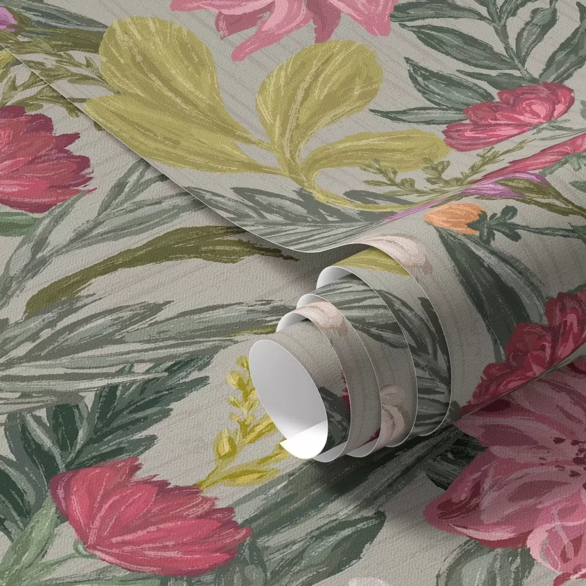 Tapete Üppige rosa und cremefarbene Blumen auf grauem Hintergrund, pastose Textur Nr. a00629