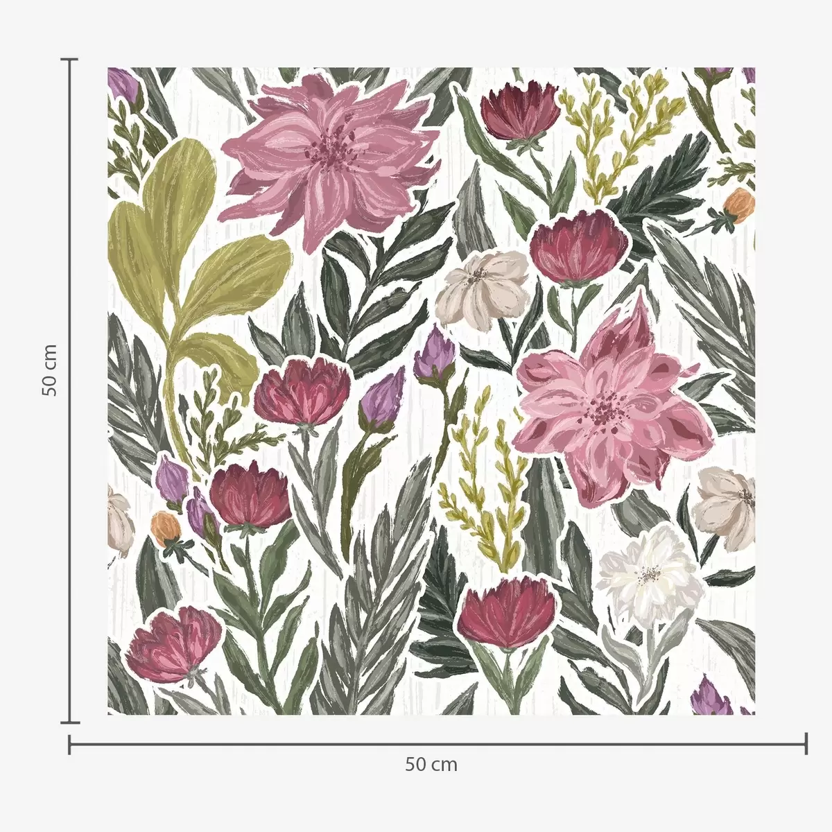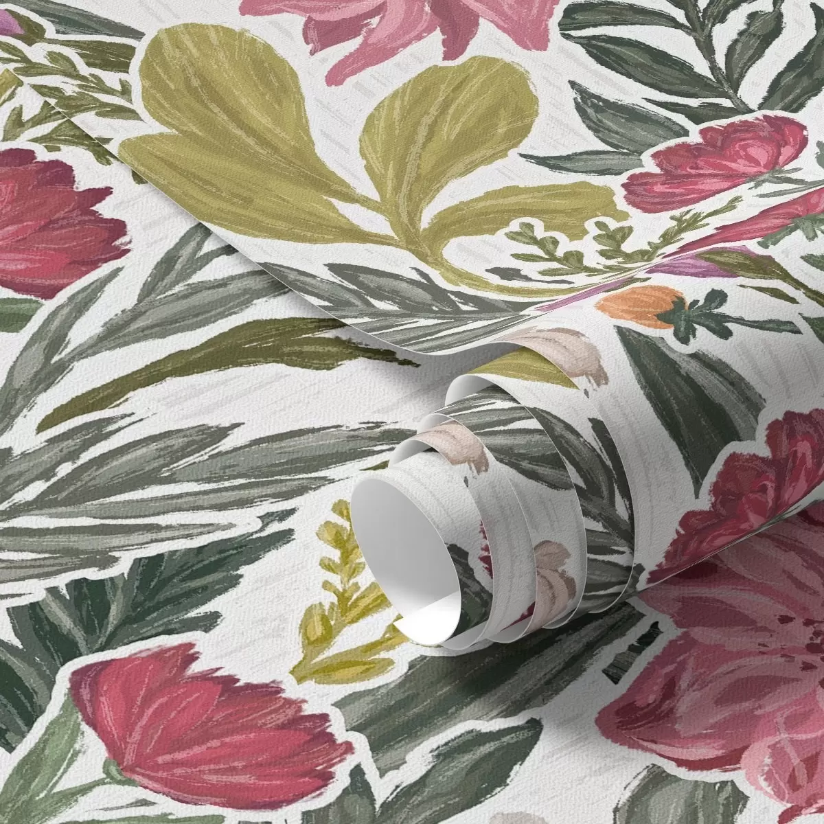 Tapete Üppige rosa und cremefarbene Blumen auf weißem Hintergrund, pastose Textur Nr. a00629v1
