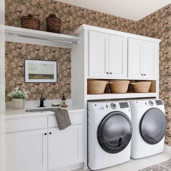 Tapete Rosa Blumen und Schmetterlinge auf olivbeigem Hintergrund Nr. a00633v2