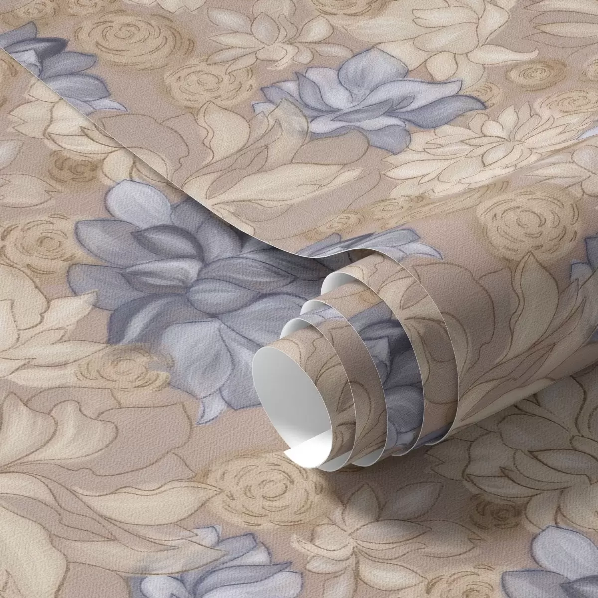 Tapete Cremefarbene und blaue Blumen auf warmem beigem Hintergrund Nr. a00634v1