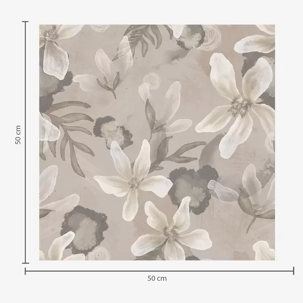 Tapete Große beigefarbene Blumen mit abstrakten Wasserfarbenflecken Nr. a00635