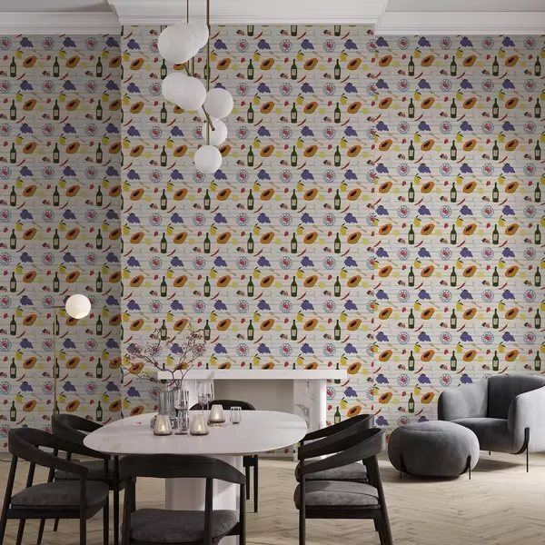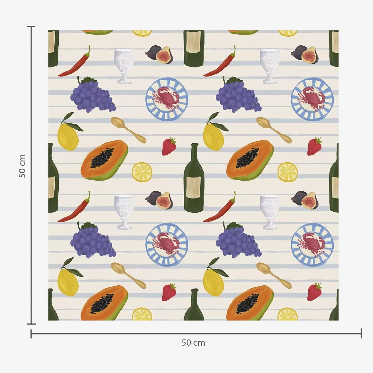 Tapete Küchenprint mit Früchten, Gläsern und Tellern Nr. a00638