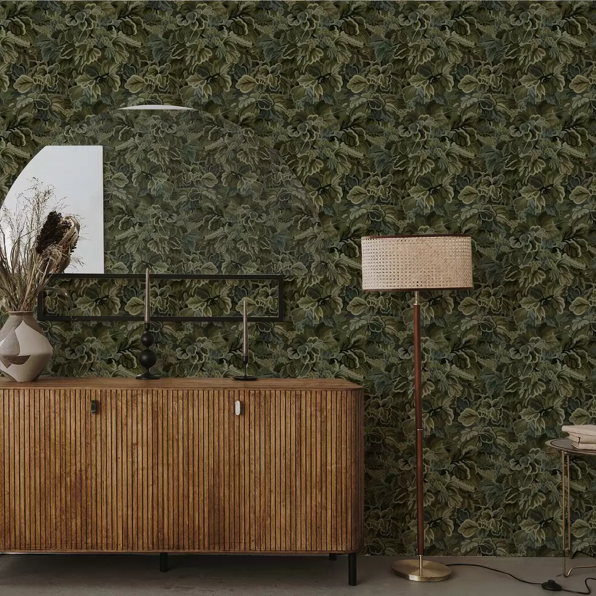 Tapete Dichte Weinblätter in einem tiefen Grünton Nr. a00647