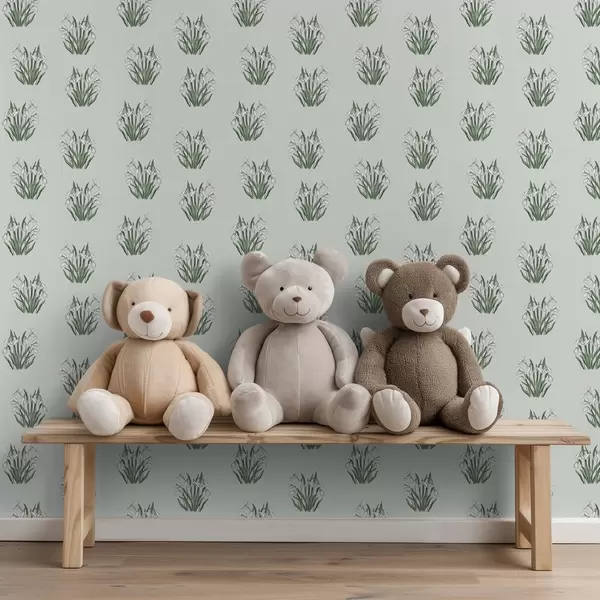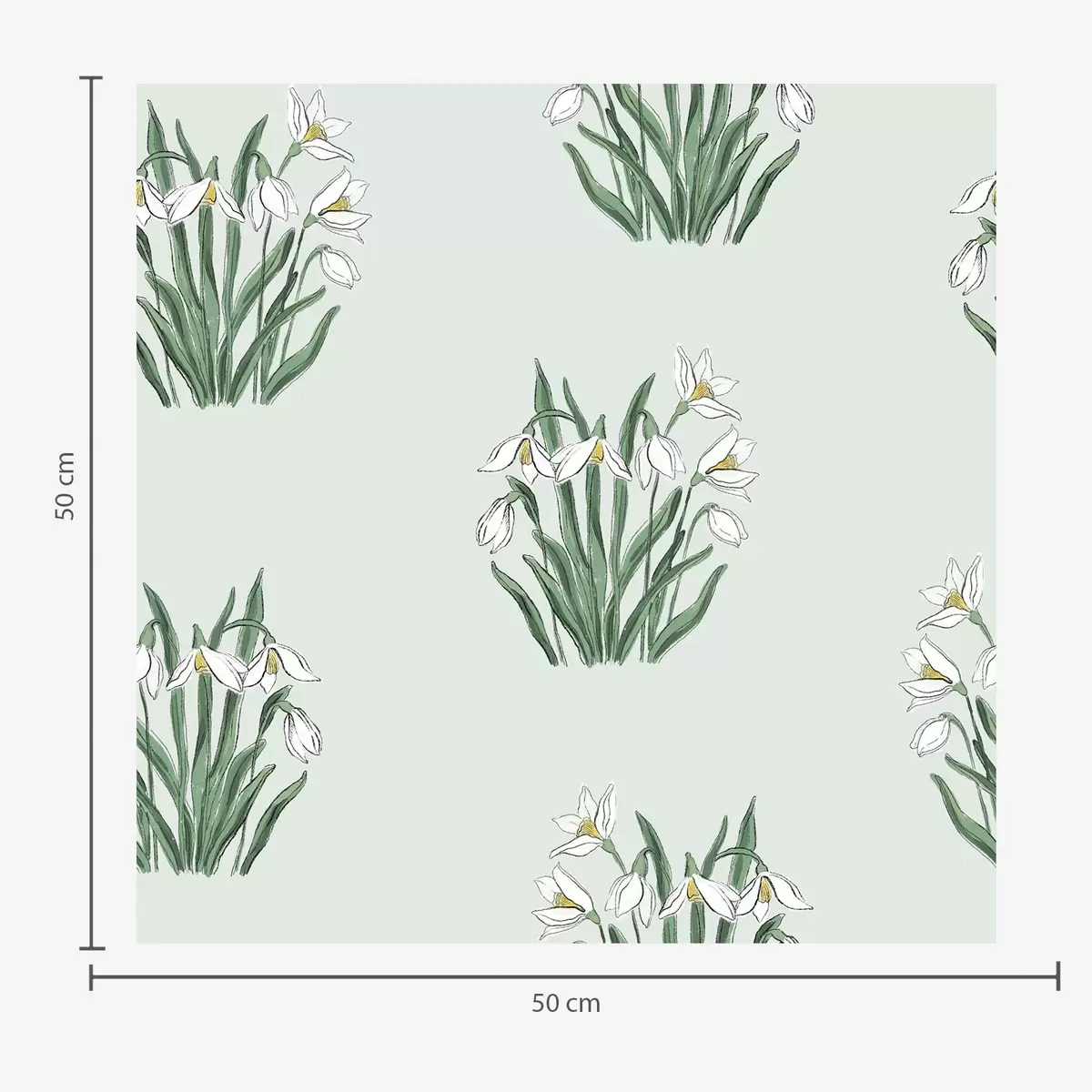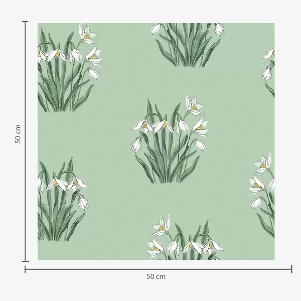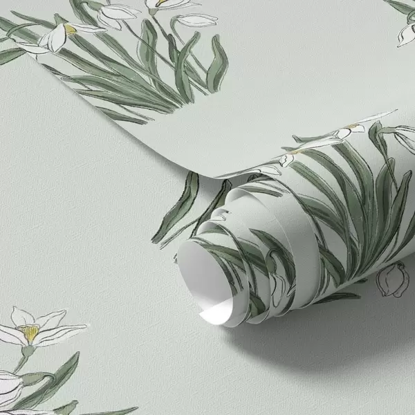 Tapete Schneeglöckchen mit grünen Blättern auf pastellgrünem Hintergrund Nr. a00651