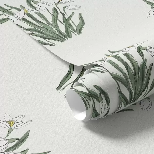 Tapete Schneeglöckchen mit grünen Blättern auf hellgrauem Hintergrund Nr. a00651v1